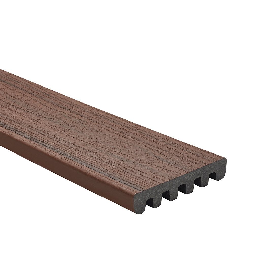 Die Verarbeitung der Trex-Dielen ist ähnlich wie die von Holzdielen. Sie lassen sich ebenso leicht schneiden, sägen und bohren. Darüber hinaus splittern und verziehen sie sich nicht beim Lagern auf der Baustelle. Von Trex Transcend unterscheidet sich die Trex Enhance Terrassenverkleidung vor allem durch das auf der Unterseite gezahnten Profil. Dadurch werden Enhance-Dielen leichter, was ihre Handhabung und ihren Transport vereinfacht.