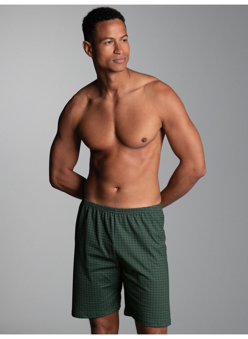 Diese trigema Herren Bermuda mit Allover-Retro-Print ist Ihre ideale Wahl für entspannte Tage und Nächte. Diese Bermuda vereint Komfort und modisches Design auf perfekte Weise, sodass Sie sich jederzeit wohlfühlen können. Der praktische Gummibund sorgt für eine angenehme Passform, während der klassische Schnitt und der V-Ausschnitt einen zeitlosen Look kreieren, der sowohl lässig als auch elegant wirkt. Der einzigartige Allover-Retro-Print verleiht der Bermuda eine lebendige Note und macht sie zu einem echten Hingucker. Hergestellt aus hochwertiger DELUXE Single-Jersey-Qualität, bietet dieses Kleidungsstück nicht nur Langlebigkeit, sondern auch einen hohen Tragekomfort.