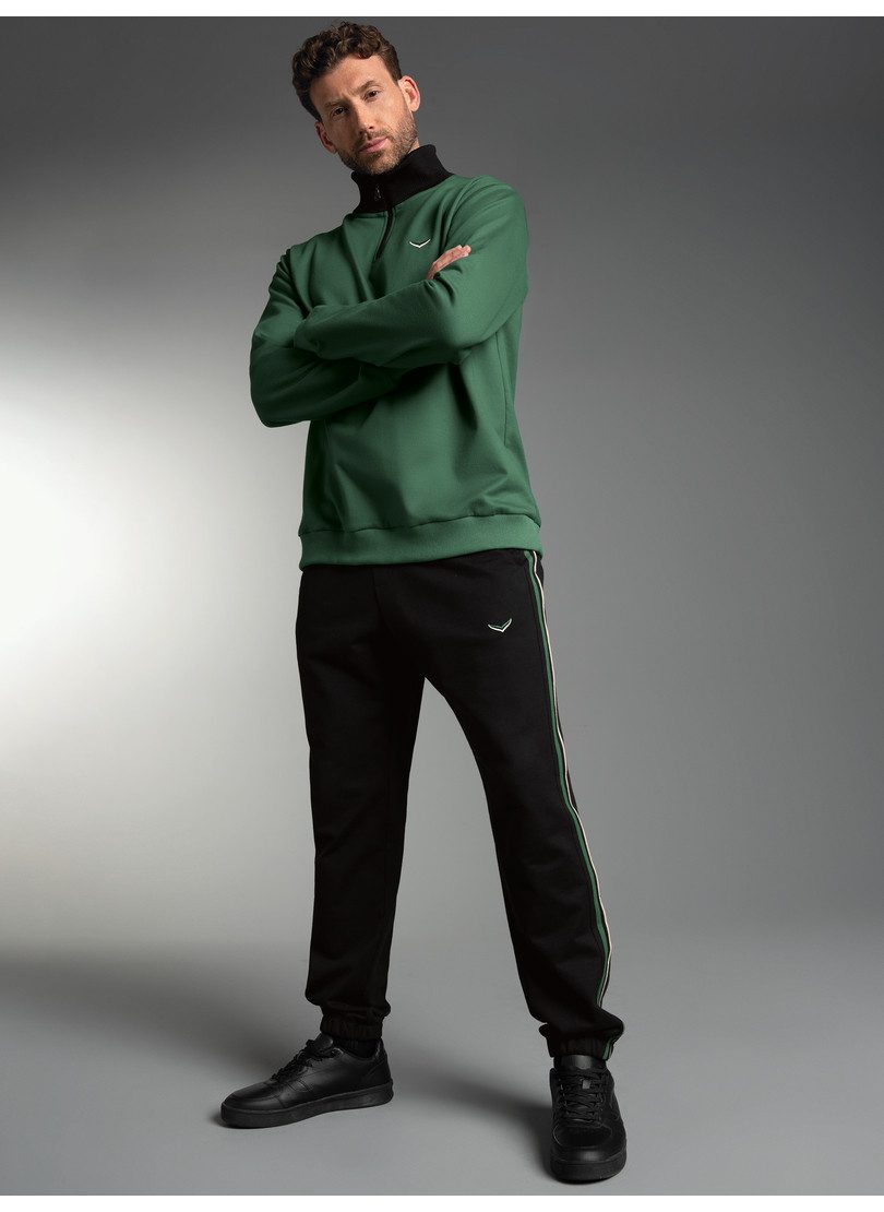 Erleben Sie höchsten Tragekomfort und modernes Design mit dem hochwertigen trigema Jogginganzug für Herren. Das Set aus Sweatshirt und Jogginghose bietet eine perfekte Kombination aus Funktionalität, Stil und Qualität – ideal für entspannte Stunden, sportliche Aktivitäten oder den Alltag. Das Sweatshirt mit Reißverschluss überzeugt durch kontrastfarbige Akzente und die dezente trigema Schwinge auf der Brust – ein sportlich-eleganter Hingucker. Die Jogginghose ist mit seitlichen Kontraststreifen, einem elastischen Bund mit Kordelzug und praktischen Reißverschlusstaschen ausgestattet. Ein Gummizug am Beinabschluss sorgt für optimalen Sitz und Bewegungsfreiheit. Gefertigt aus weicher Sweat-Qualität, ist dieser Freizeitanzug angenehm atmungsaktiv und formstabil – ideal als Trainingsanzug, Sportanzug oder für gemütliche Momente daheim. Entscheiden Sie sich für langlebige Qualität und zeitlosen Stil – mit dem trigema Jogginganzug "Made in Germany".