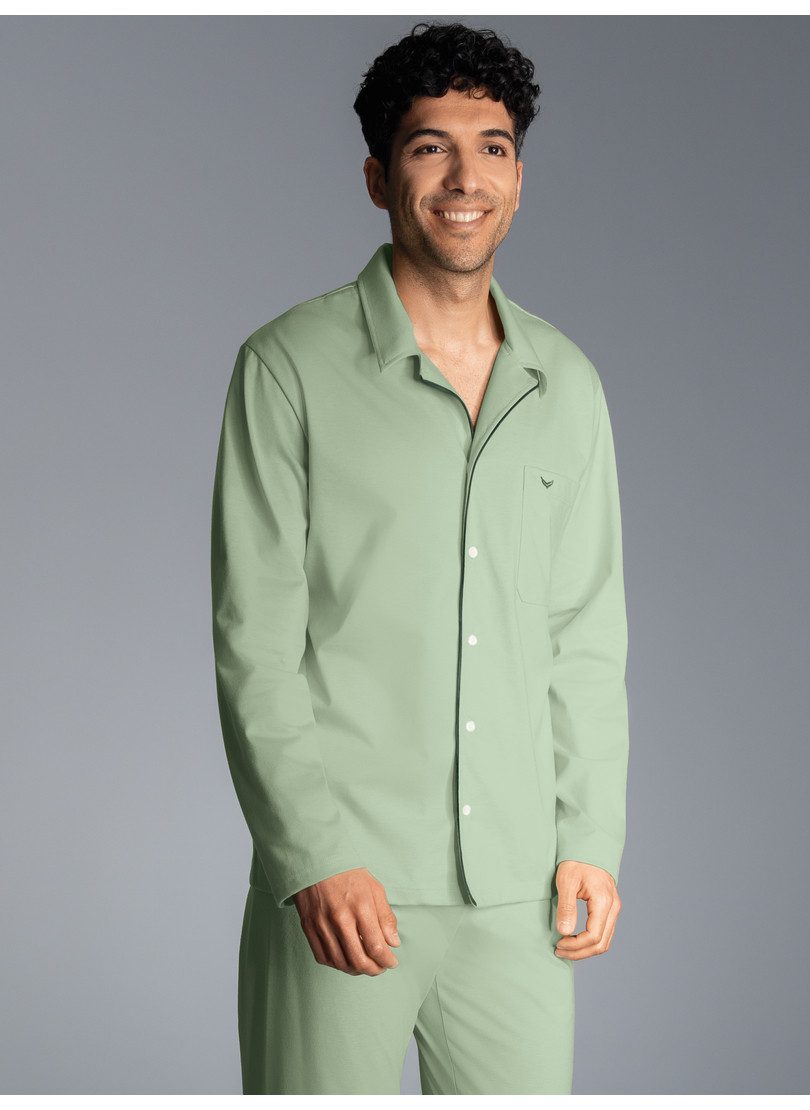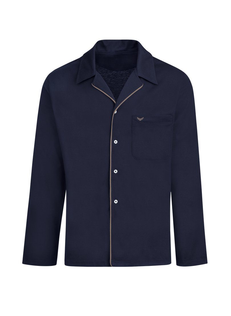 Machen Sie Schluss mit langweiliger Nachtwäsche und setzen Sie auf Eleganz und Bequemlichkeit! Das schicke Schlafanzug Oberteil von TRIGEMA begleitet Sie auf stilvolle Weise in die Traumwelt. Die erstklassige DELUXE-Single-Jersey-Qualität garantiert ein angenehmes Tragegefühl und der klassische Schnitt verleiht dem Oberteil zusammen mit Brusttasche und Knopfleiste einen zeitlosen Charme sowie praktische Funktionalität.