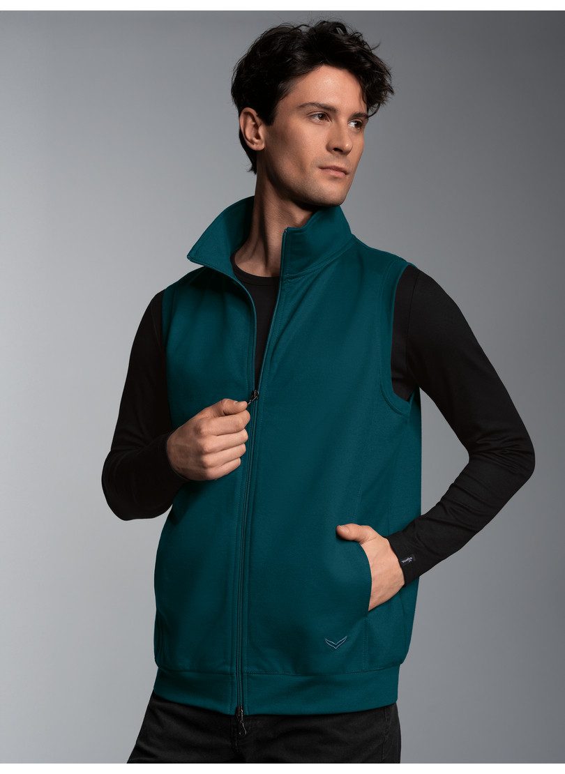 Erfahren Sie höchsten Tragekomfort und ansprechendes Design mit dieser Weste! Mit dem praktischen Stehkragen und klassischen Schnitt ist sie der perfekte Allrounder für die kühlen Jahreszeiten. Sie schützt zuverlässig vor Wind und Wetter und sieht dabei modern und ansprechend aus. Die Weste besteht aus weicher Sweat-Qualität und bietet ein angenehmes Tragegefühl sowie einen wärmenden Effekt. Greifen Sie jetzt zu und erleben Sie die perfekte Kombination aus Funktionalität und Stil!