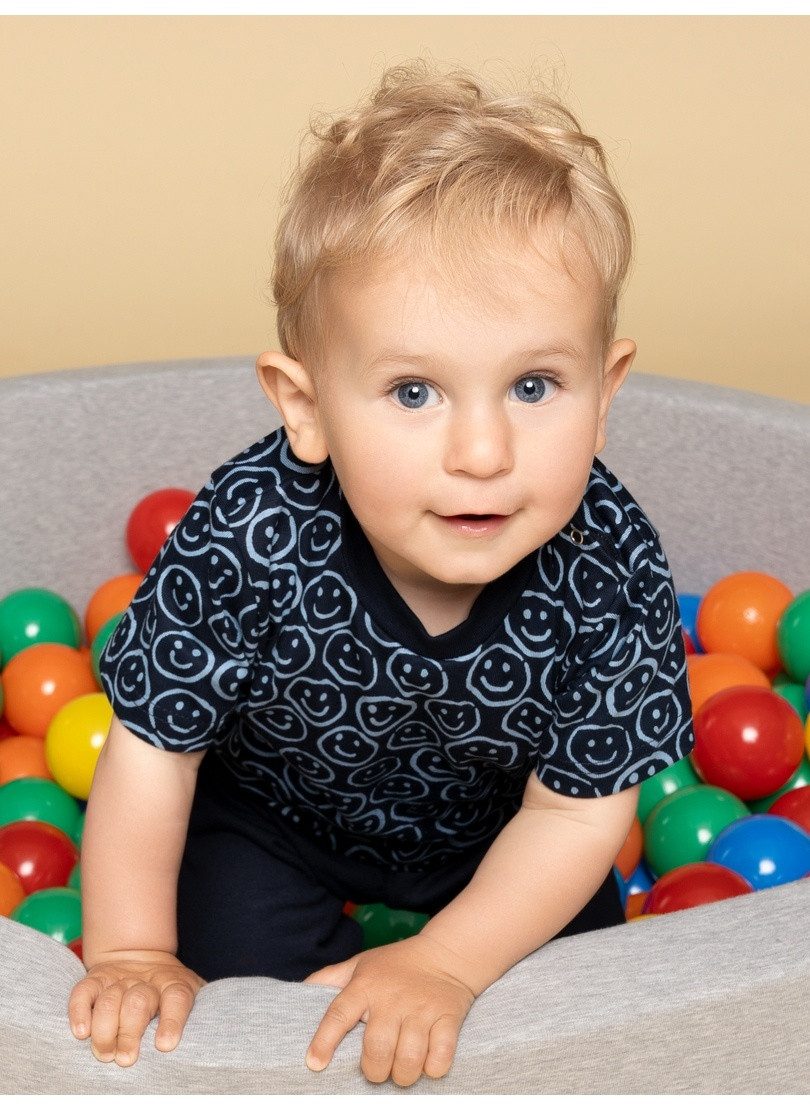 Wir sind uns sicher, dass Ihr kleiner Sonnenschein ohnehin mächtig gute Laune verbreitet, doch davon kann man schließlich nie genug haben! Denn auch an Tagen, an denen es mal weniger gut gelaunt zugeht, lächeln Ihnen auf diesem Baby T-Shirt viele kleine Smileys entgegen, die den Frust schnell wieder vergessen machen. Dabei fühlt sich das Shirt auch noch kuschlig weich an und ist sehr pflegeleicht – das hochwertige Material aus 100% Baumwolle macht's möglich!