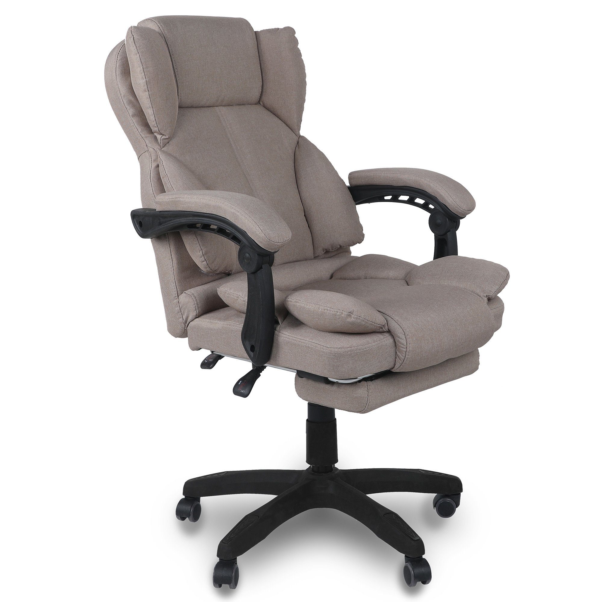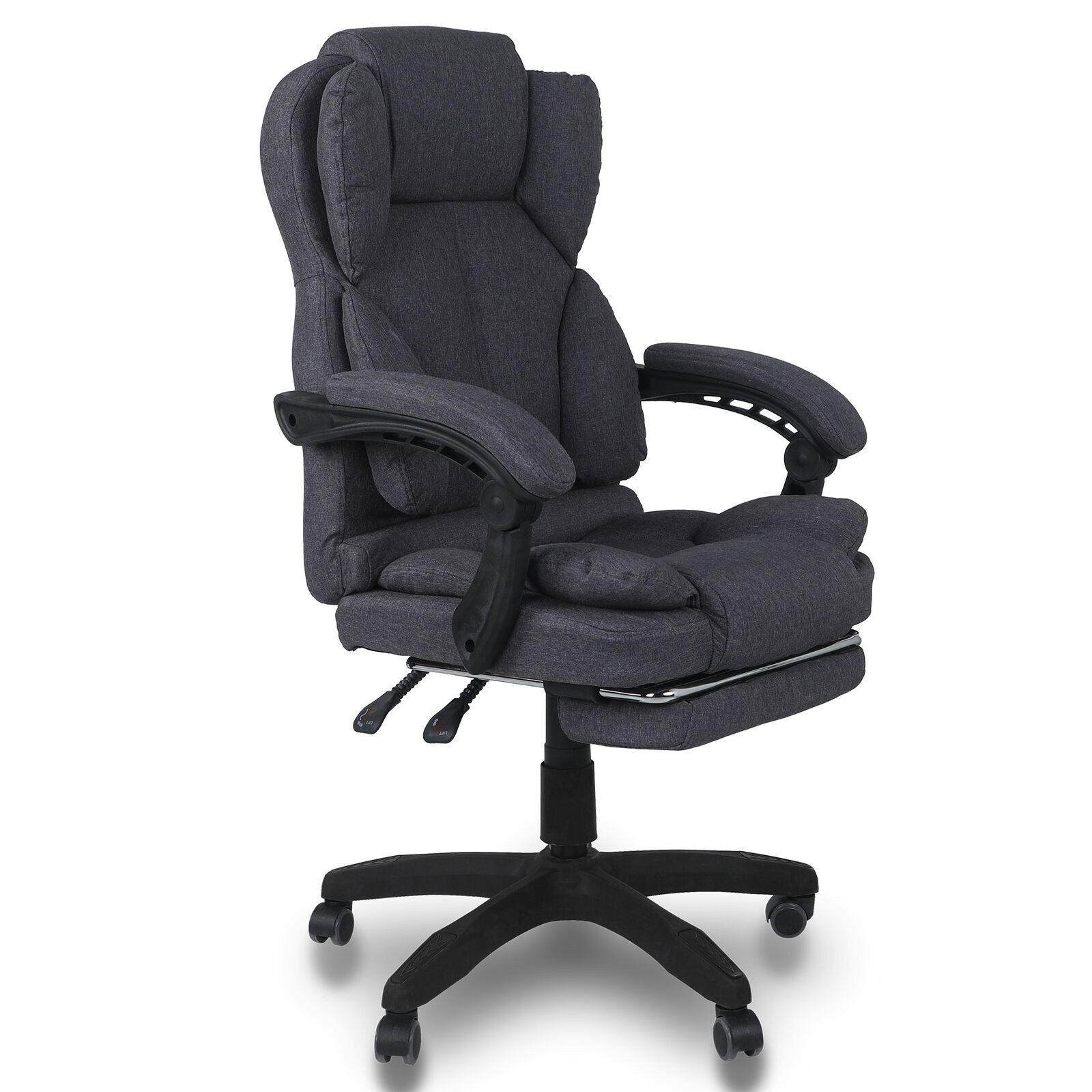 Flexibler Chefsessel im markenten und doch edlen Stoff-Design. Dieser Bürostuhl ist mit flexiblen, gepolsterten 3-Punkt-Armlehnen ausgestattet. Er kann in eine Relaxposition (siehe Animation links) eingestellt werden und die Armlehnen passen sich der Position mit an. Für die beste Entspannung kann die gepolsterte Fußstütze einfach ausgezogen werden.