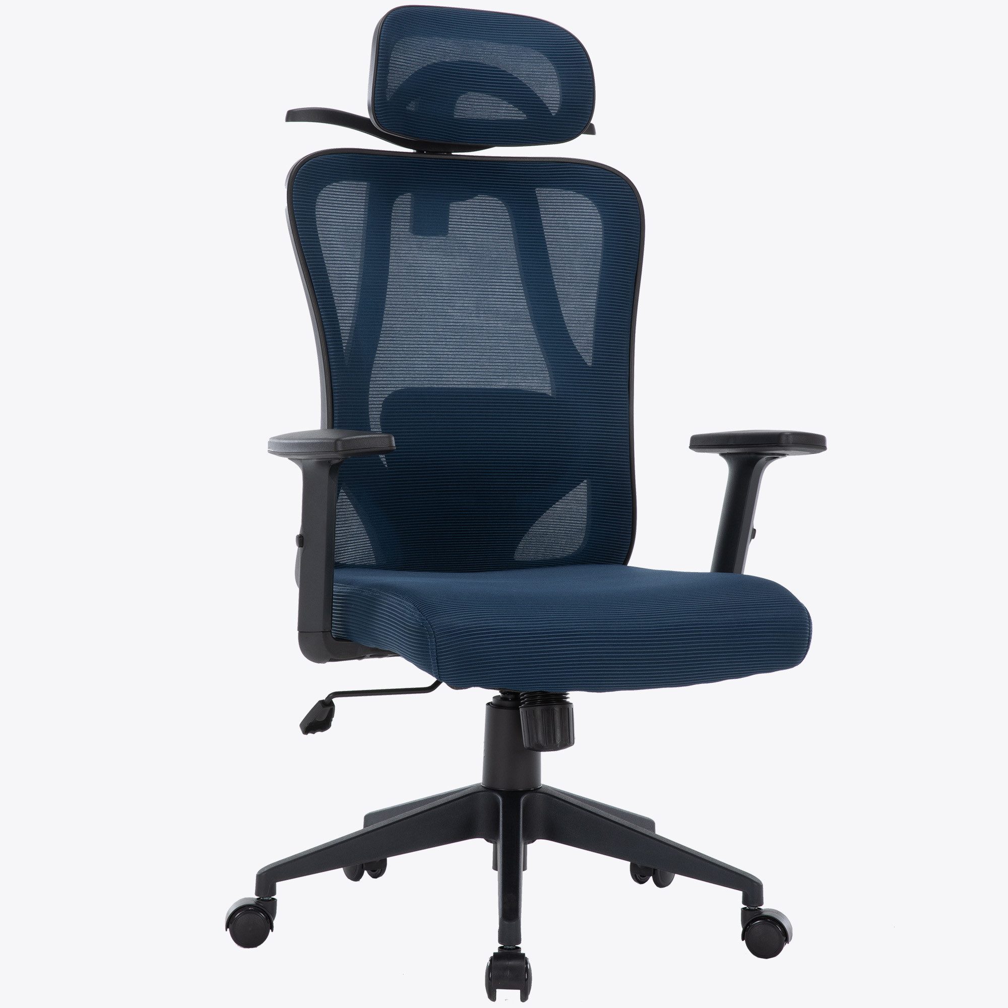 Der Drehstuhl verfügt über einen Einstellhebel. Mit dem Hebel lässt sich die Sitzhöhe einstellen.