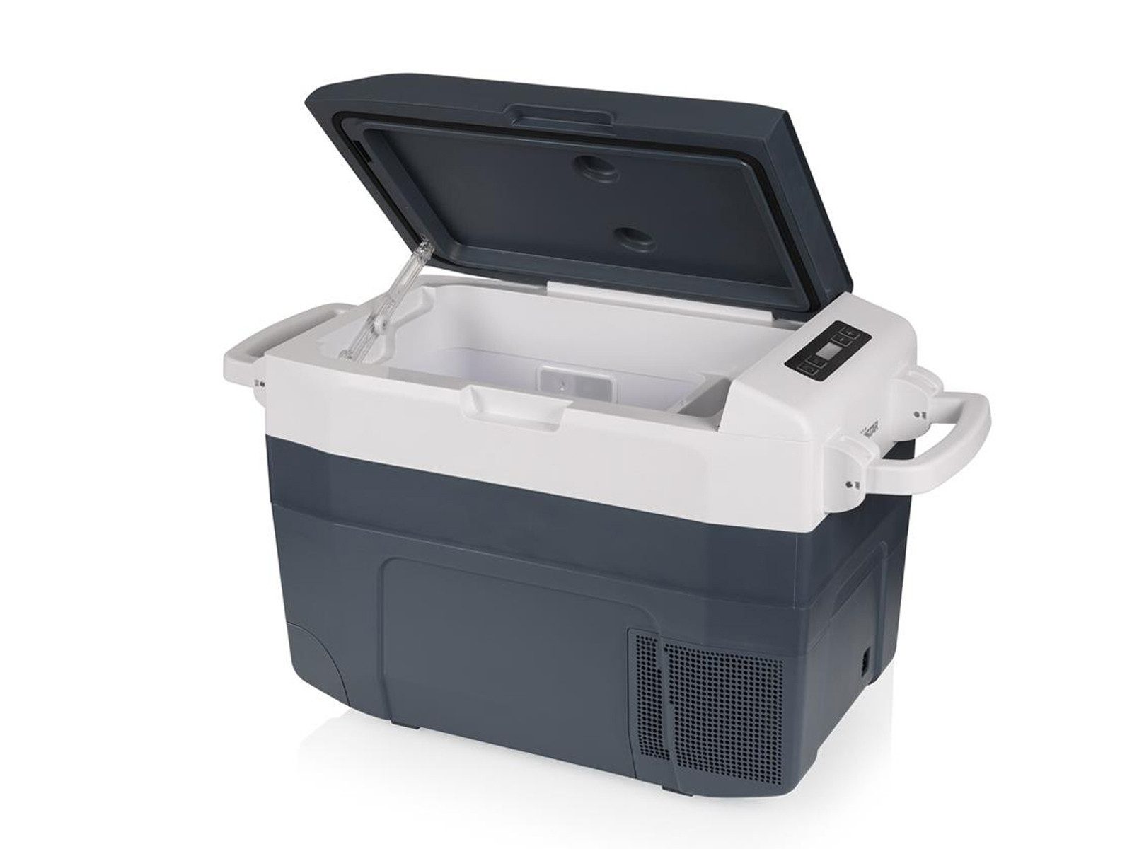 Впередe Vorteile | LED-Anzeige mit digitaler Temperaturregelung, gradgenau einstellbar Gleichstromkompressor und ein dynamisches Autobatterieschutzsystem Keine Kühlakkus erforderlich Reichlich eiskalte Getränke dank des Volumens von 40 l Temperaturbereich von -18 °C bis 10 °C |