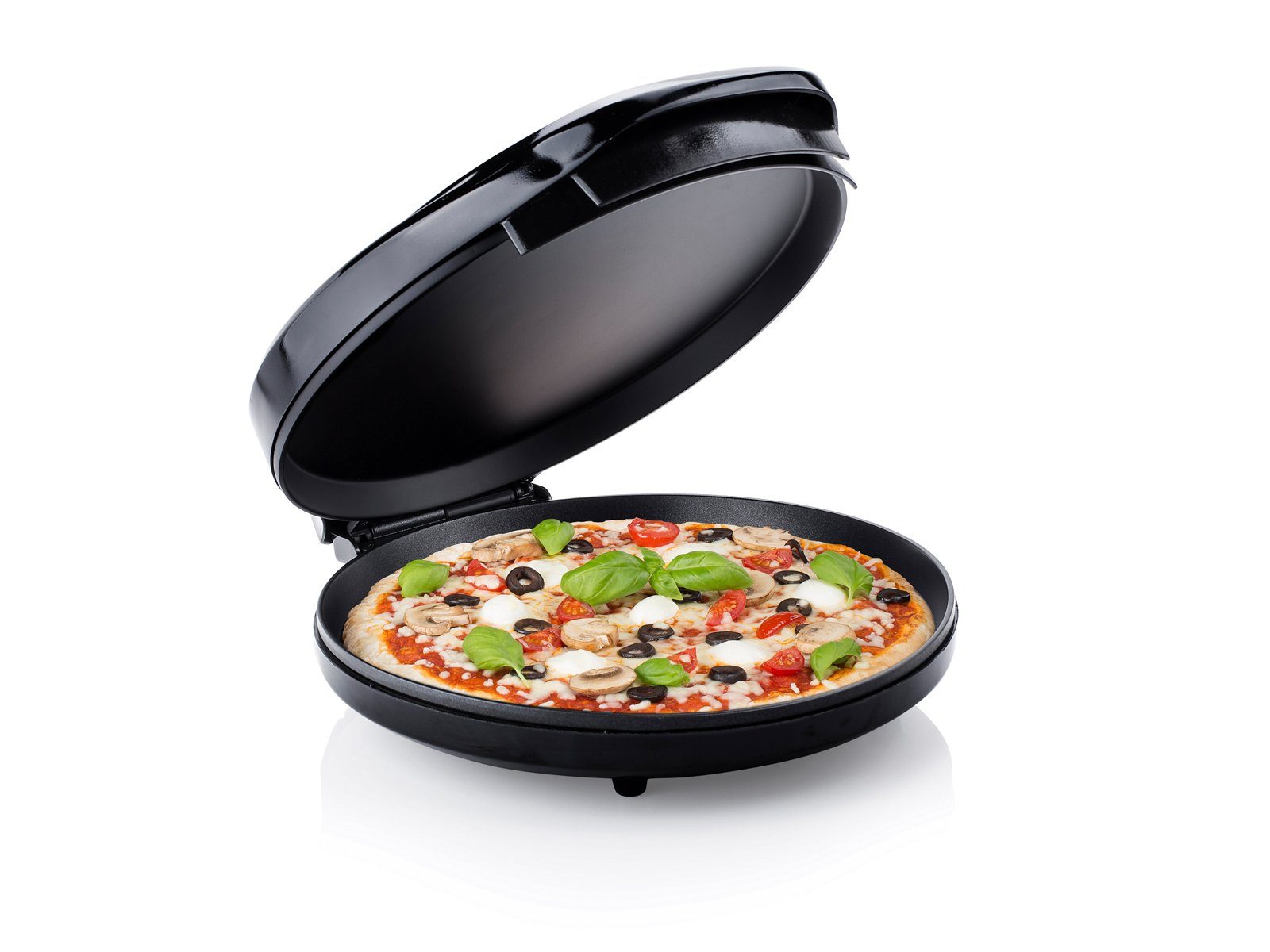 Впередe Vorteile | Dank 30cm Durchmesser der Backplatte, passen auch Tiefkühlpizzen optimal in die Expresspfanne Für flache Gerichte mit einem Durchmesser bis zu 30cm geeignet Sie können den Deckel jederzeit öffnen, um das Gericht zu überprüfen 2 Heizelemente für optimale Hitzeverteilung |