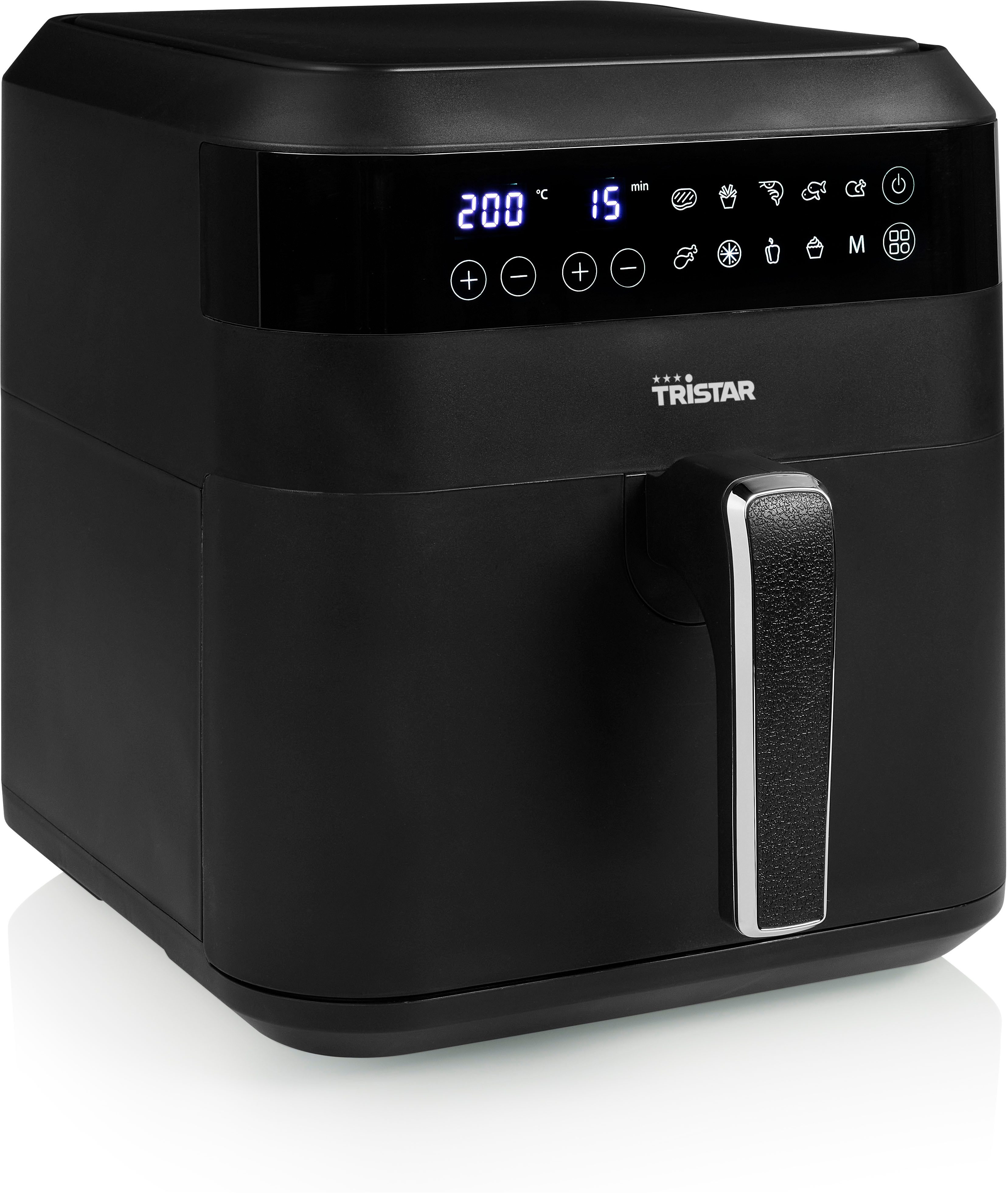 Впередe Vorteile | Außerdem können Sie den Korb mit Hilfe des Cool-Touch-Griffs sicher aus der Fritteuse nehmen. Durch diese Technologie bleibt der Griff immer kalt. Außerdem ist der Airfryer mit rutschfesten Füßen ausgestattet, damit er immer fest auf der Arbeitsplatte steht. Der Tristar Airfryer XXL ist mit einer Antihaftbeschichtung versehen, die sehr pflegeleicht und einfach zu reinigen ist. Da sich der Korb leicht aus der Fritteuse herausnehmen lässt, ist auch die Reinigung im Handumdrehen erledigt. Der Tristar Digital Airfryer XXL hat ein extra großes Fassungsvermögen, in dem Sie bis zu 1,5 kg Pommes frites auf einmal backen können: genug für die ganze Familie! Dank der Technologie, bei der die heiße Luft mit hoher Geschwindigkeit zirkuliert, erhält man ein sehr knuspriges Ergebnis ohne Öl oder mit ein wenig Öl, wodurch die Pommes frites viel fettärmer und gesünder werden. Aber das ist nicht alles: Sie können mit dem Digital Airfryer auch backen, grillen oder braten. Auf diese Weise können Sie im Airfryer problemlos Fleisch- oder Fischgerichte und Gemüse, aber auch Sandwiches, Kuchen oder Torten zubereiten. Die digitale Friteuse FR-6999 ist sicher in der Anwendung. Der Airfryer ist mit einem Überhitzungsschutz ausgestattet, so dass Sie sich keine Sorgen machen müssen, dass der Airfryer überhitzt. |