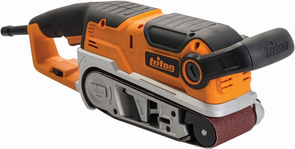 Leistungsstarker 1200-W-Motor für schnellen Materialabtrag mit stufenloser Drehzahlregelung. Frontrolle mit kleinem Durchmesser zum Schleifen in engen Bereichen und für Detailarbeiten. Bandlaufregelung für präzise Schleifbandausrichtung. Seitlicher Staubabsaugstutzen zum Anschluss eines Staubfangbeutels oder Staubabsaugsystems. Stationärhalterungen, Staubfangbeutel und drei Schleifbänder (80er-, 100er- und 180er-Körnung) im Lieferumfang enthalten. Gewicht: 5,15 kg.