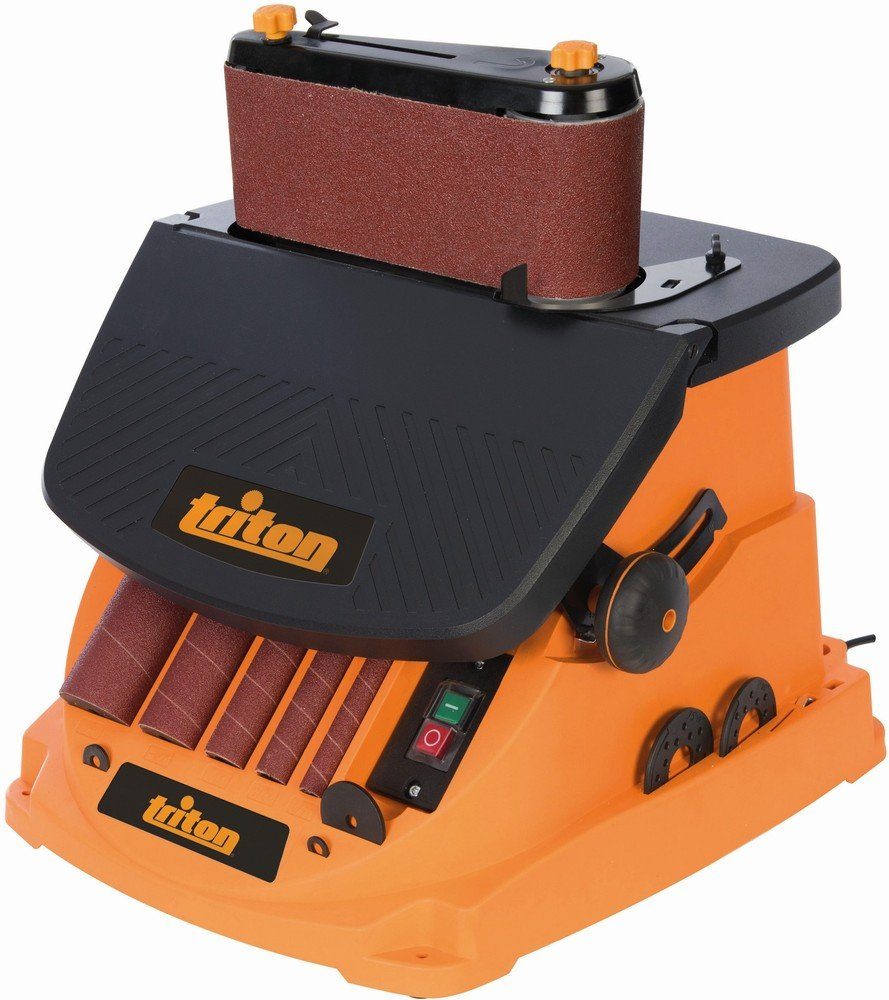 Doppelte Konfiguration mit schnellen u. mühelosen Wechseln zwischen Spindel- u. Bandschleifer. Rotation u. vertikale Oszillation für schnelles Abschleifen u. raschen Abtrag. 0–45°-Schwenktisch für müheloses Anfasen u. vereinfachte Kantenbearbeitung. 5 Schleifhülsen mit Ø 13–51 mm u. 100 x 610 mm Schleifband bieten höchstmögliche Vielseitigkeit u. raschen Abtrag bei filigranen u. konturierten ebenso wie bei herkömmlichen Werkstücken. Kraftvoller 450-W-Motor. Zubehöraufbewahrung am Gerät. Tischeinlagen mit Lüftungsschlitzen u. Staubabsaugung unter dem Tisch. Wahlweise Werkbankmontage oder freistehende Verwendung. Staubgeschützter Sicherheitsschalter. Inkl. Bandschleifeinheit, 5 Tischeinlagen, 4 Walzenscheiben, 4 Walzen, 5 Hülsen, 100-mm-Staubabzugsadapter u. Spindelschlüssel.