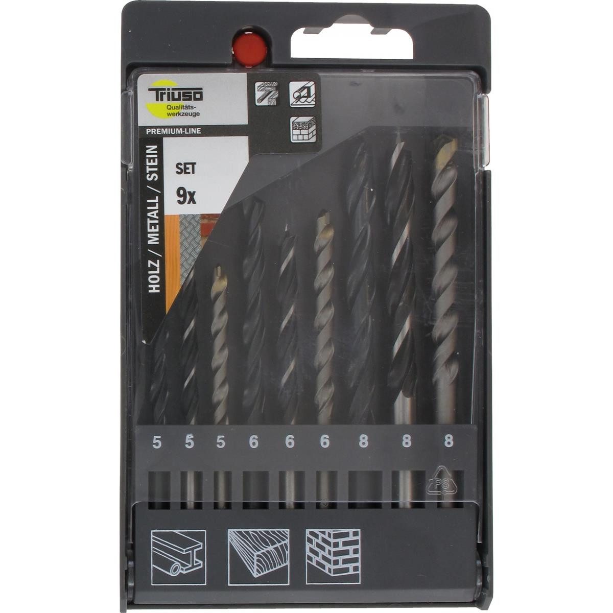 Bohrer-Set 9-teiligHOLZBOHRER Ausführung: Holzspiralbohrer aus CV-Stahl, gehärtet mit Zentrierspitze und Schneideform B. Anwendung: Für den Einsatz in Hart- und Weichholz, Sperrholz, Spanplatten usw.