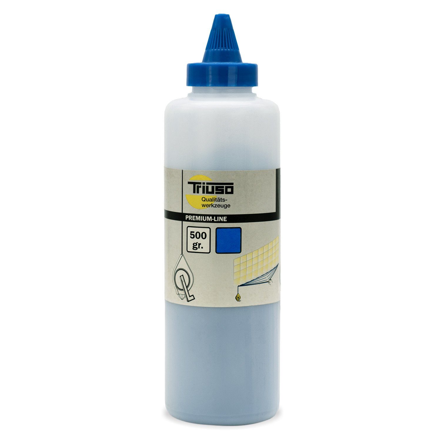 TRIUSO Premium-Line Blau ist ein hochwertiges Farbpuder für Schlagschnurgeräte. Es ist in einer praktischen Schraubflasche mit 500 g Inhalt erhältlich. Das Farbpulver ist bedingt wasserfest und hat eine gute Deckkraft.