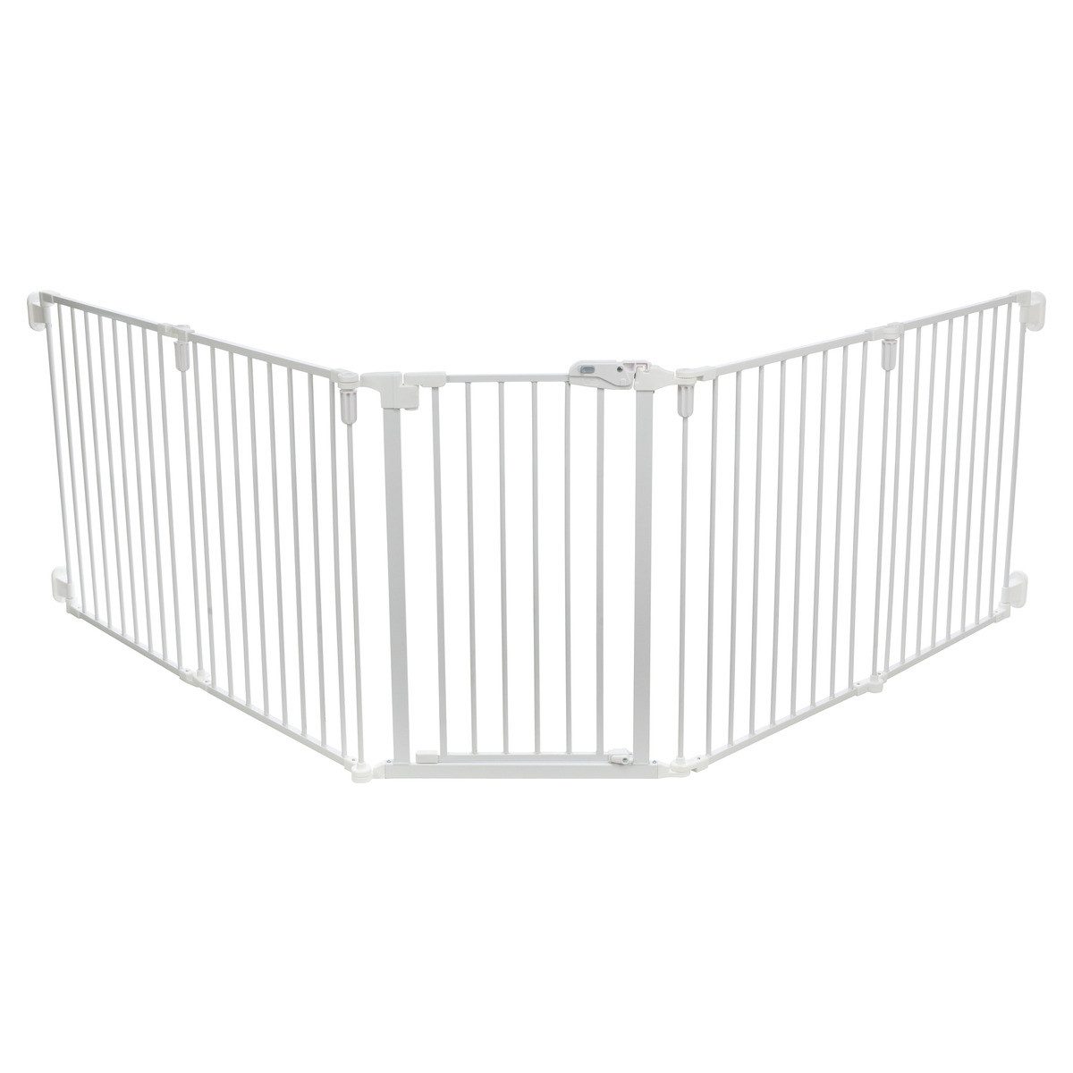 Mit seinen fünf 62,5 x 76,5 cm großen Elementen bietet das Gitter eine flexible Konfigurationsmöglichkeit, die an die individuellen Bedürfnisse und Raumgegebenheiten angepasst werden kann. Die integrierte Tür sorgt für zusätzliche Benutzerfreundlichkeit, sodass Menschen den Bereich problemlos betreten und verlassen können.