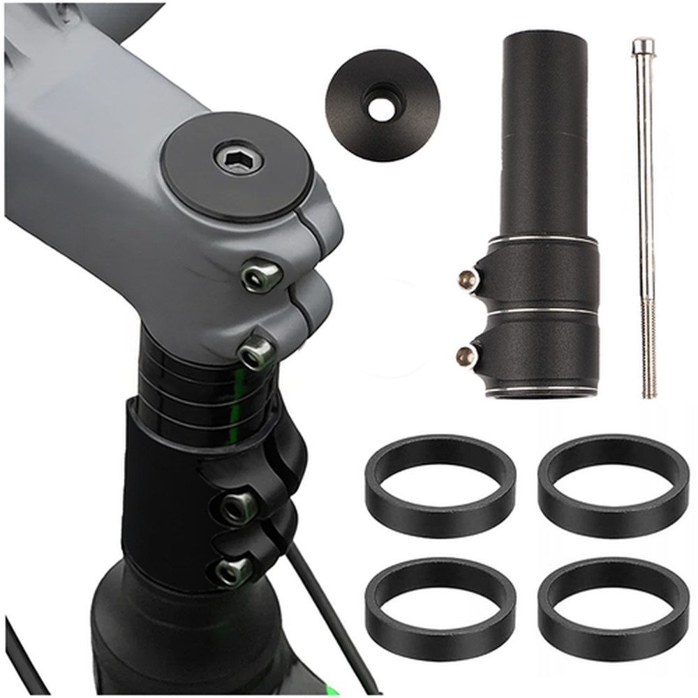 Der stabile Adapter passt dank 28,6 mm Standardmaß zu den meisten Fahrrädern. Er erhöht den Lenker bis zu 130 mm und sorgt so für eine ergonomische Sitzhaltung, entlastet Rücken und Handgelenke und verbessert die Kontrolle – ideal für City-, Trekking- und MTB-Räder. Einfache Montage ohne Austausch weiterer Teile.