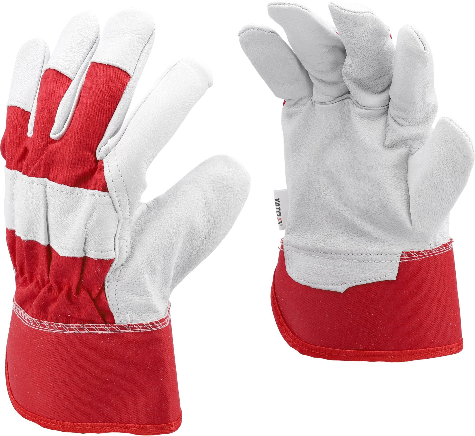 Bauhandschuhe aus Naturleder und Baumwollgestrick in rot. Das hochwertige Ziegenleder macht die Handschuhe sehr angenehm im Griff und verhindert übermäßiges Schwitzen. Sie eignen sich besonders für schwere Arbeiten auf dem Bau, im Garten und überall dort, wo keine hohe Griffpräzision erforderlich ist.