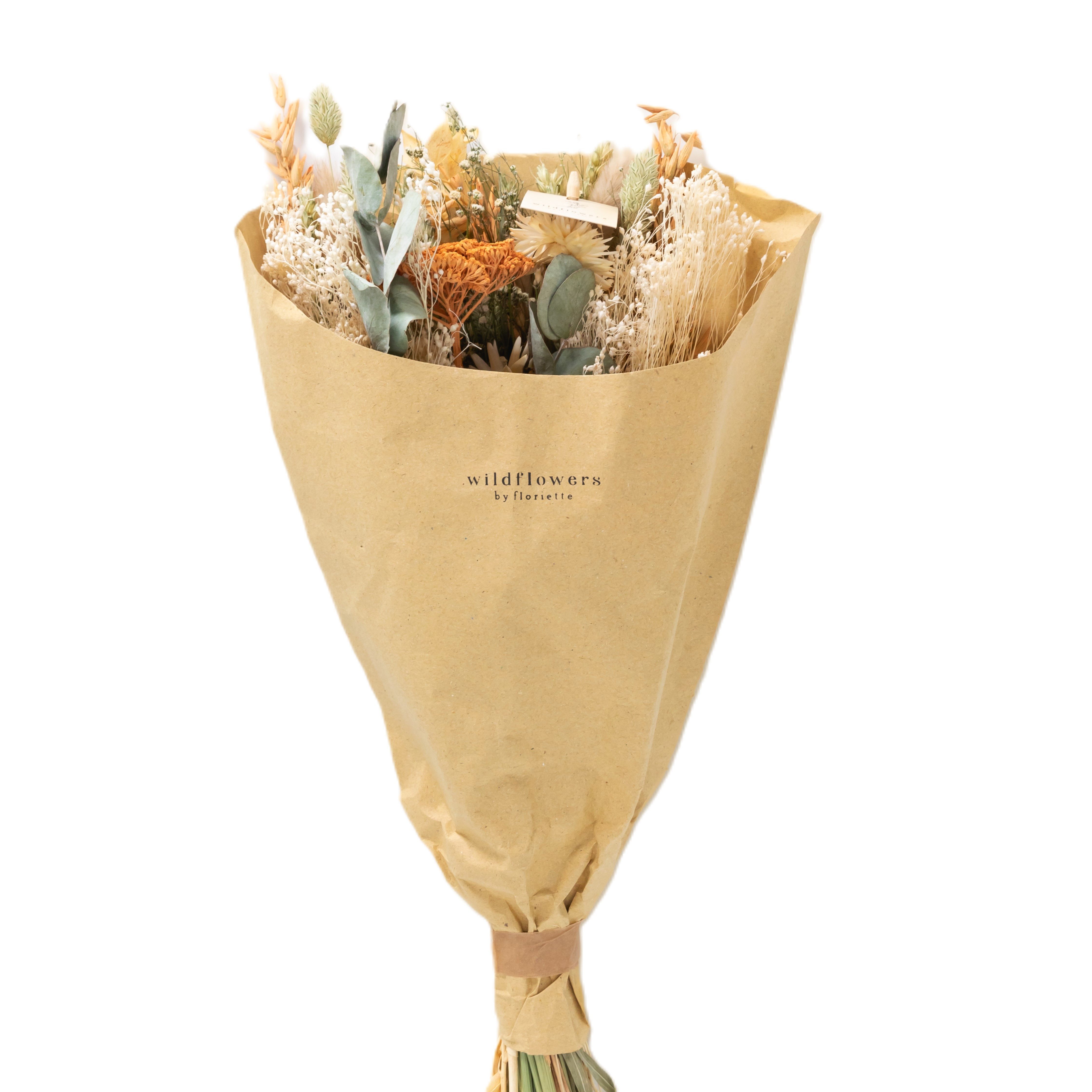 Großer Feldstrauß Aprikose: Natürliches, zartes Design mit aprikosenfarbenen, hellen Trockenblumen mit einem gewissen rustikalen Charme
