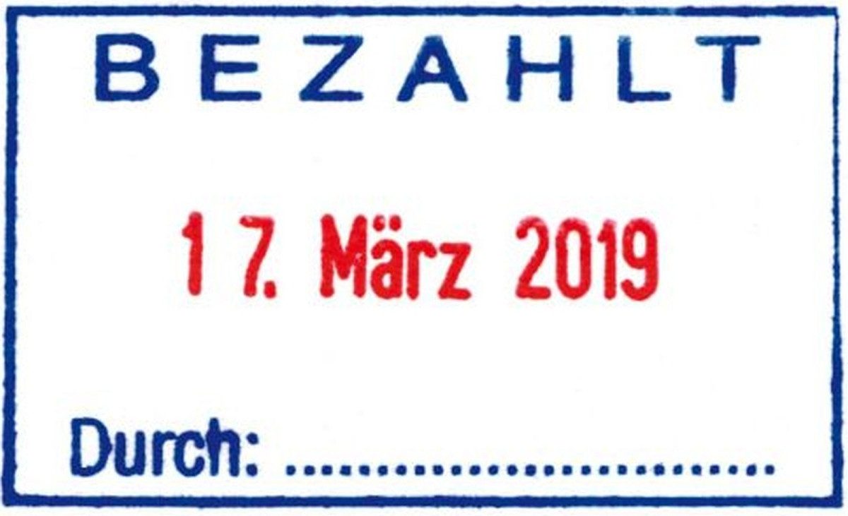 • Stempeltext: BEZAHLT