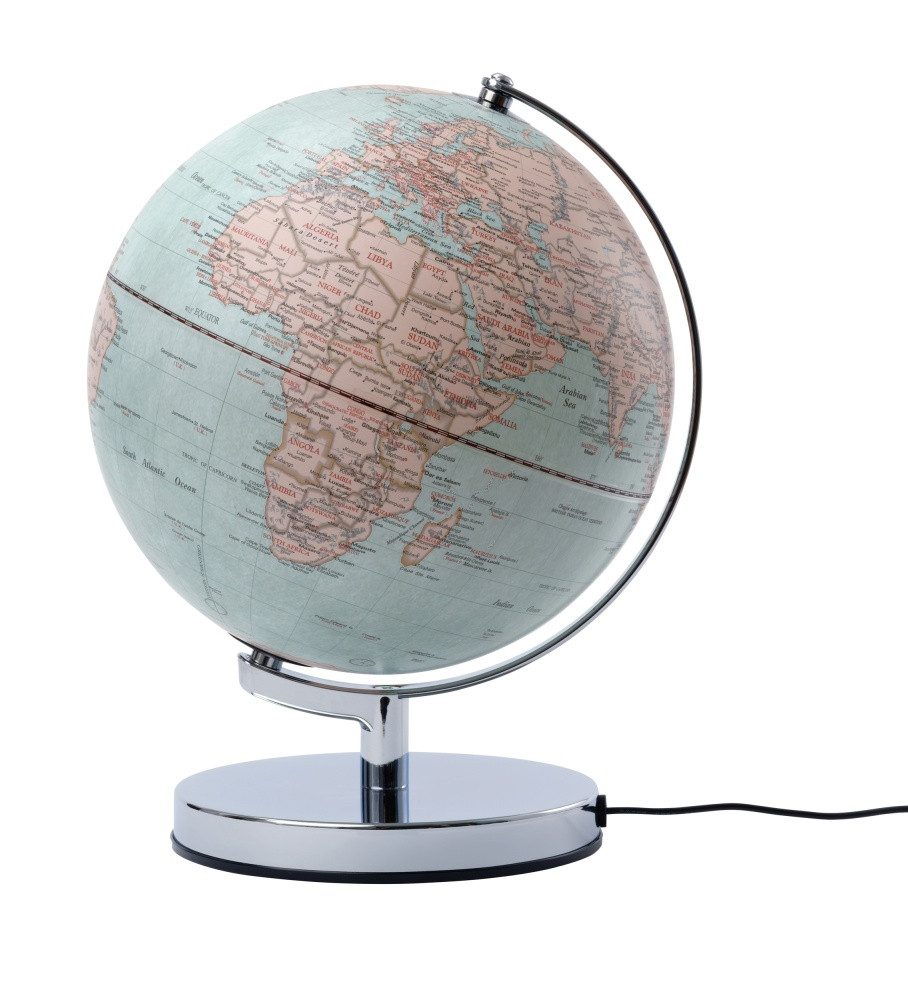 Schöner Lichteffekt. Ein attraktiver Blickfang, der sich nützlich macht: Der englisch beschriftete Globus TERRA LIGHT schafft schnelle Orientierung in Ortsfragen und ist mit seiner großen Farbauswahl und seiner integrierten LED-Beleuchtung gleichzeitig ein dekoratives Accessoire für Büro, Wohnbereich sowie Kinder- und Jugendzimmer. Zur weiteren Ausstattung gehören das hochwertig verchromte Metallgestell sowie ein schwarzes Kabel mit Euro-Stecker und Schalter.