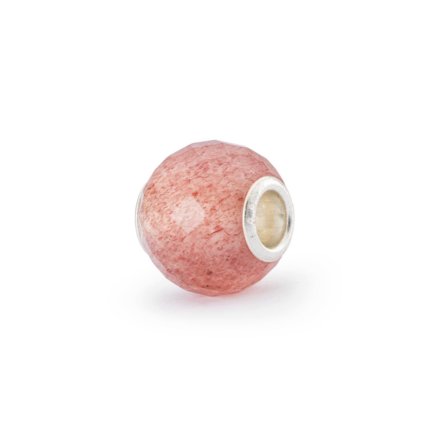 Ein runder, facettierter Stein aus Erdbeerquarz.