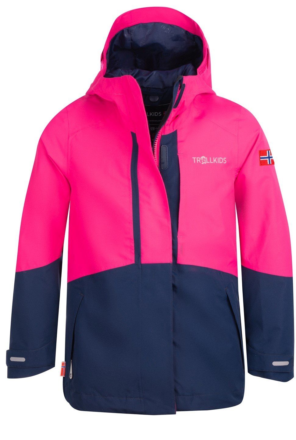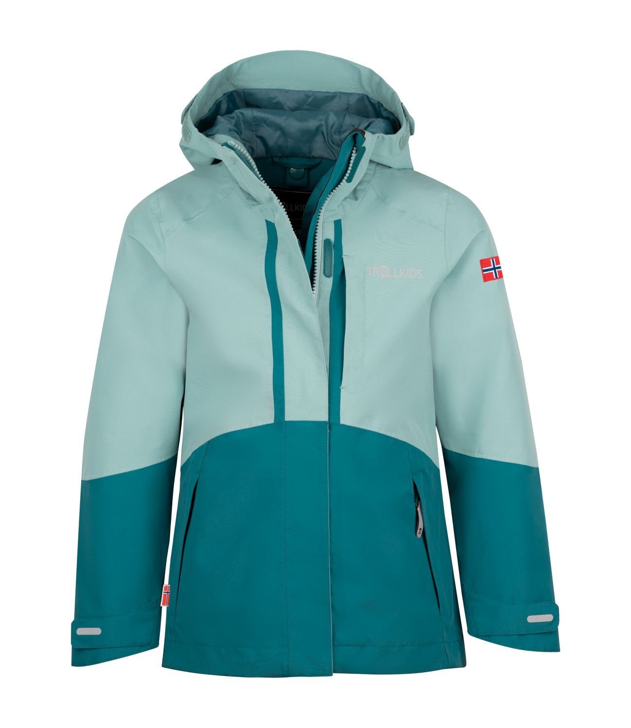 Das GIRLS SKALAND JACKET ist aus recyceltem Polyester-Stoff genäht und tut damit der Umwelt etwas Gutes: Das Material wird aus PET-Flaschen hergestellt. Das schont die Ressource Erdöl und reduziert den CO2-Ausstoß. Die leichte, wasserdichte Jacke mit Mesh-Innenfutter hat zwei Hüft-Reißverschlusstaschen vorne, eine Brusttasche mit Reißverschluss und eine angeschnittene, hinten und am Saum beidseits mit Klett verstellbare Kapuze – für eine optimale Passform. Reflektierende Details erhöhen die Sichtbarkeit. Dank des Zip-In-Systems kann die Jacke mit einer Fleece- oder wattierten Innenjacke (zum Beispiel der GIRLS SKAVANGEN JACKET aus recyceltem Polyester) zu einer warmen, wasserdichten Doppeljacke verbunden werden. Material: 100 % recyceltes Polyester; Futter: 100 % recyceltes Polyester; Wassersäule: 6.000 mm; Atmungsaktivität (MTVR): 6.000 g/m²/24h; Gewicht: 390 g