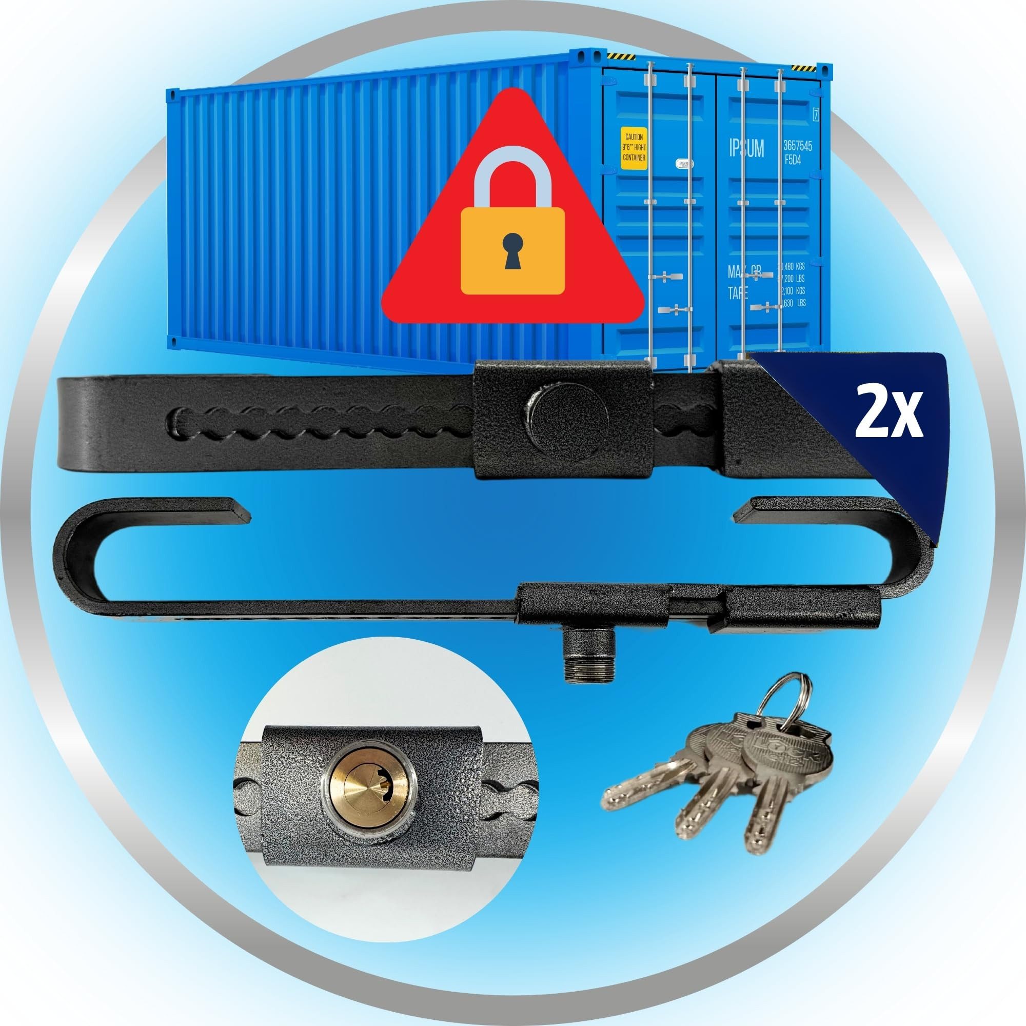 Für LKW, Seecontainer, Baucontainer, Frachtcontainer und vieles mehr. Unsere Container-Verriegelung ist für Abstände von ca. 22-43 cm geeignet. Somit ist das Schloss nicht nur für die Verriegelung von Seecontainern sondern auch zum Absperren von Türen mit vertikalen Schließstangen optimal geeignet. Perfekt für Lager & Co.
