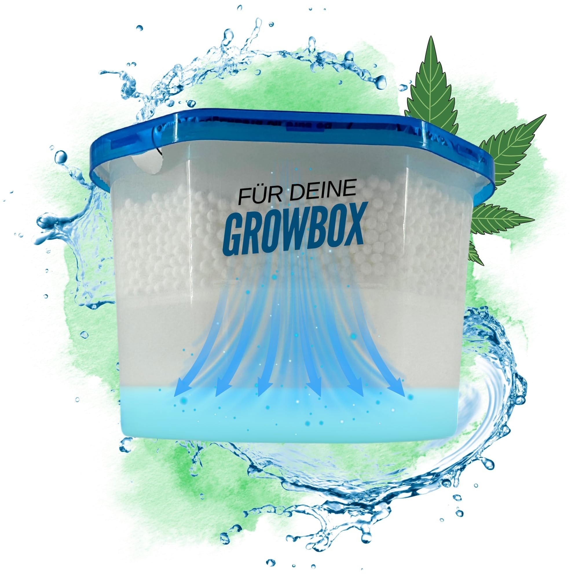 Unser Raumentfeuchter ist simpel in der Handhabung und benötigt keine komplizierten Installationen. Platziere die Luftentfeuchter Box deinem Grow Raum oder direkt in der Box, um ein angenehmes Raum Klima zu erschaffen. Du wirst den Unterschied merken – deine Pflanzen genießen ein frisches Raumklima ganz ohne Strom und Aufwand!