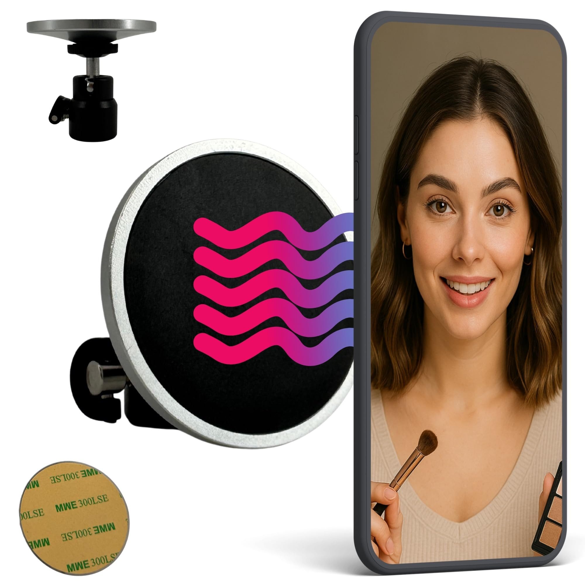 SICHERE MAGNETBEFESTIGUNG Ihr Telefon wird mit diesem magnetischen Telefonhalterungsadapter sicher an Ort und Stelle gehalten. Sein leistungsstarker Magnetaufsatz bietet festen Halt (max. Last: 700g), der Ihr Gerät stabil hält und versehentliches Verrutschen oder Fallen verhindert. Genießen Sie Ruhe bei der Verwendung Ihres Telefons in verschiedenen Aufnahmeszenarien ohne Sorgen.