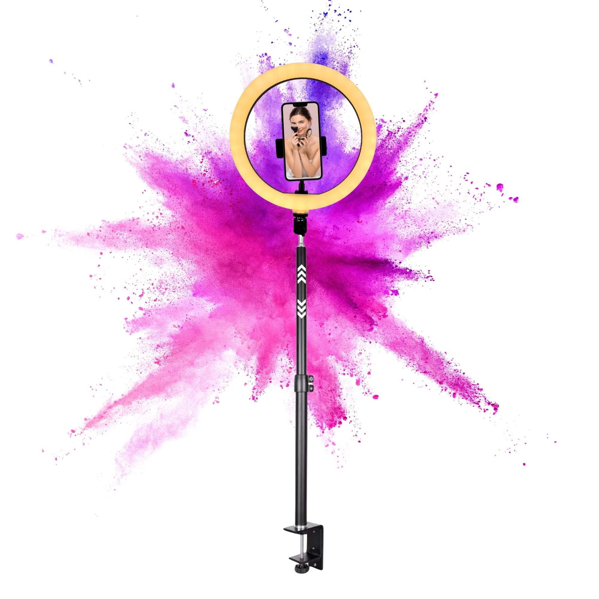 Mit dem TronicXL 10 Zoll Ringlicht leuchtest du deine Fotos und Videos in Zukunft perfekt aus! Dank der integrierten Smartphone Halterung kannst du dein Handy direkt im Ringlicht platzieren. Sowohl Smartphone Halterung wie Lampe sind flexibel einstellbar.