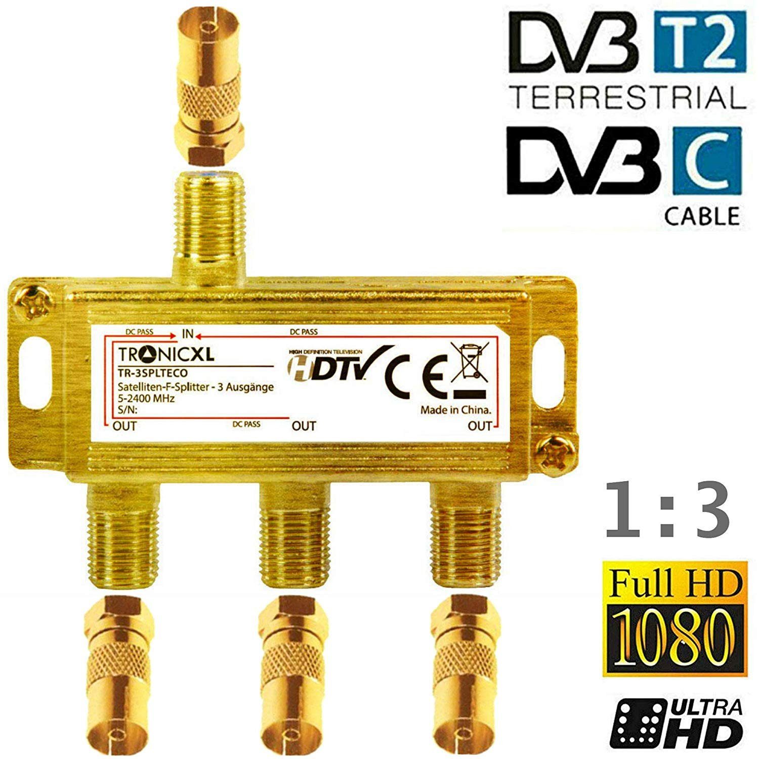 HighEnd F-Splitter 1:3 für das Aufteilen von Signalen auf 3 Leitungen.
