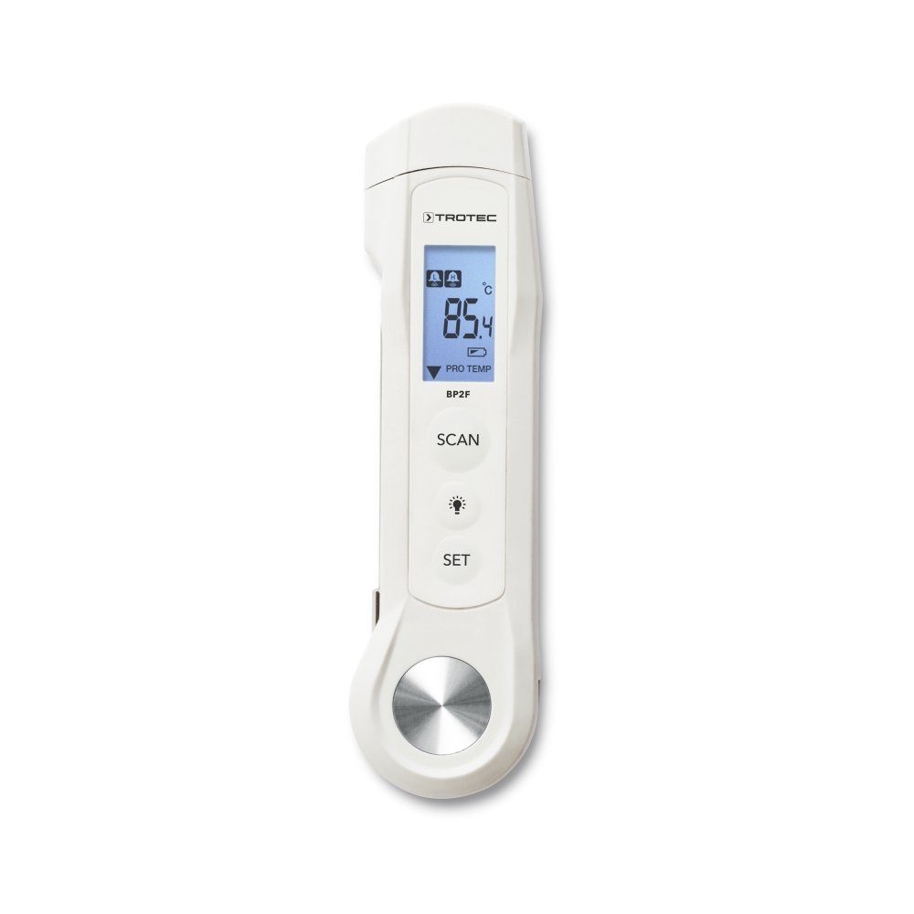 Das Lebensmittel IR-Thermometer BP2F ermittelt die Oberflächentemperatur von Lebensmitteln über einen Infrarotsensor und die Innentemperatur von Lebensmitteln über einen Temperaturfühler.