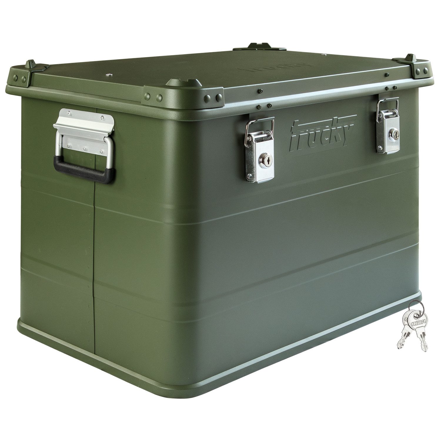 Abschließbare Alu Kiste in Grün mit Griffen und Schlössern