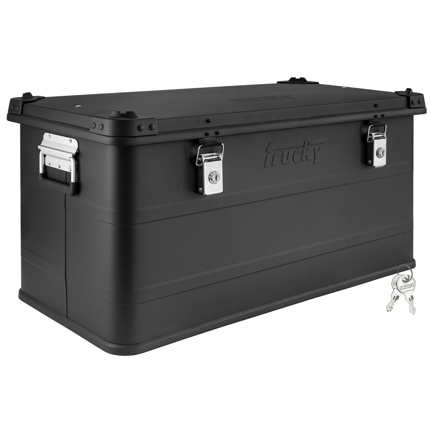 Abschließbare Alu Kiste in Schwarz mit Griffen und Schlössern