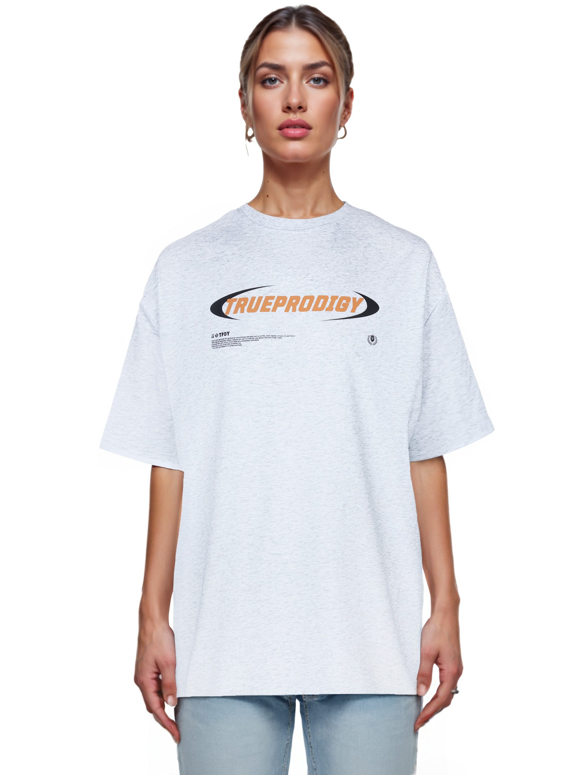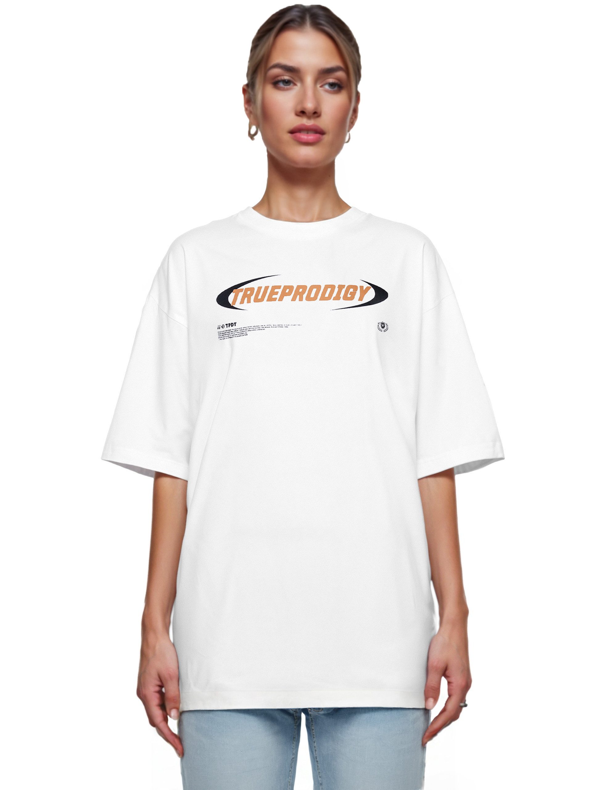 Unser Oversize Shirt von trueprodigy hat einen Rundhalsausschnitt mit Rippbündchen und einen kleinen Logoprint auf der Brust. Um einen zusätzlichen Tragekomfort haben wir einen besonderen schweren Jerseystoff für dieses T-Shirt genutzt.
