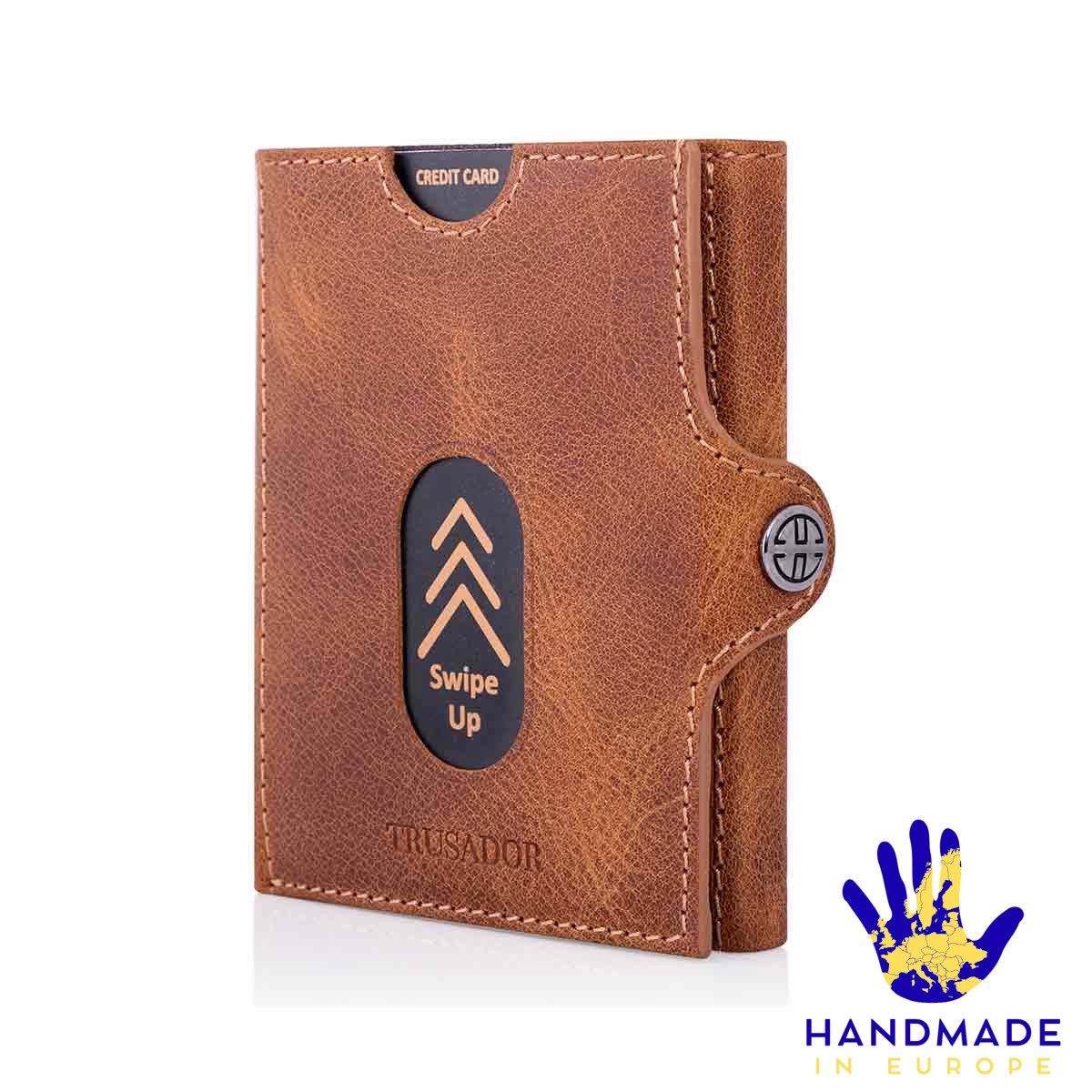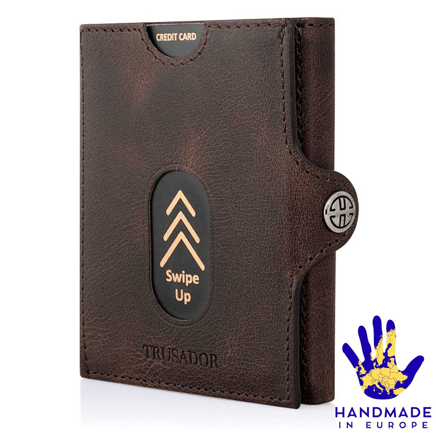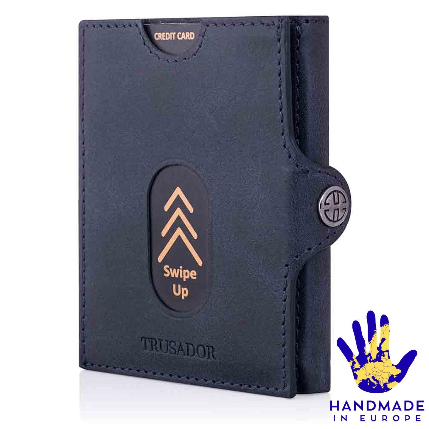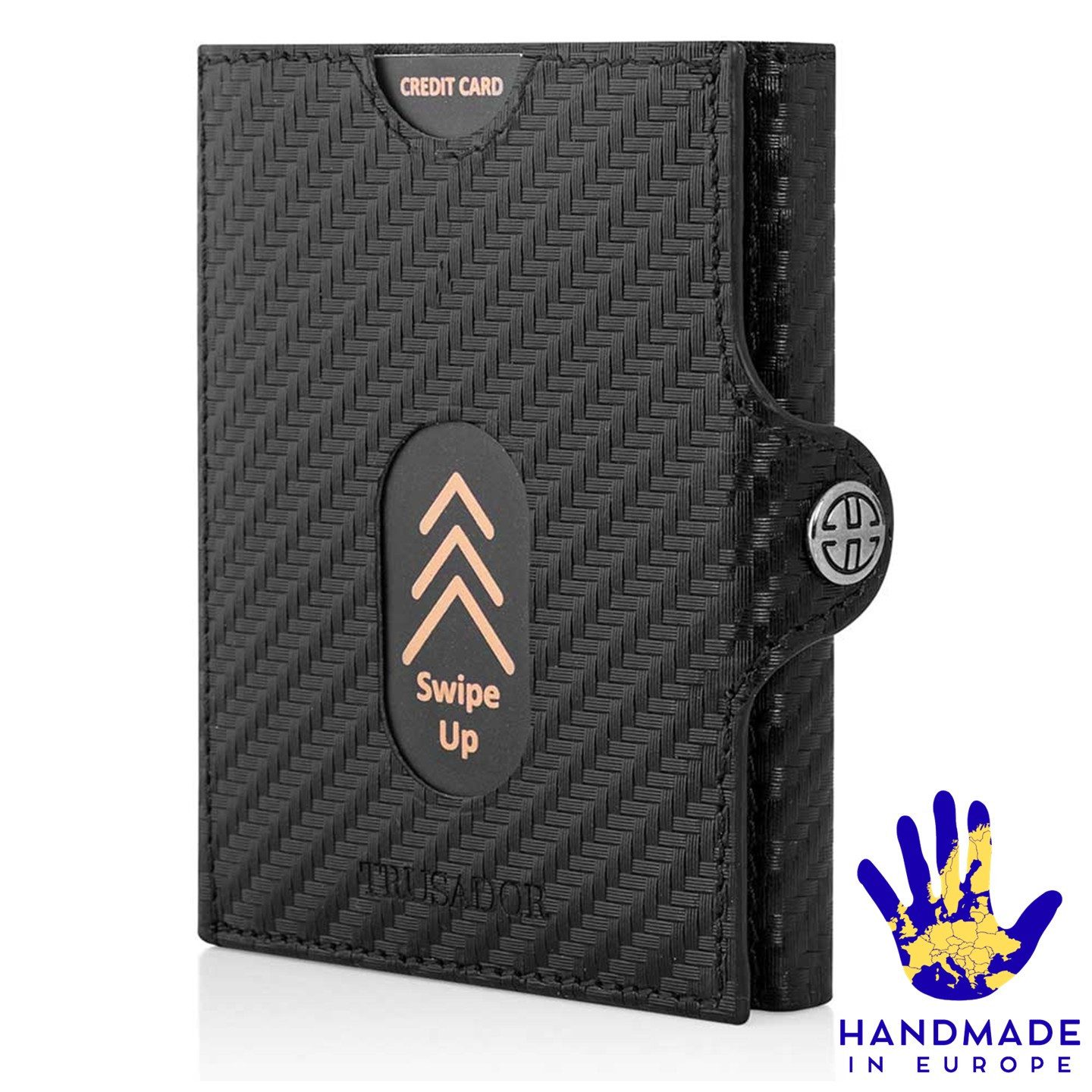 Ausstattung | RFID-Blocker, NFC-Schutz, Scheinfach, Münzfach, Kreditkartenfach, Kartenfach, Parkticket Fach, Tri-Fold, Hochformat |