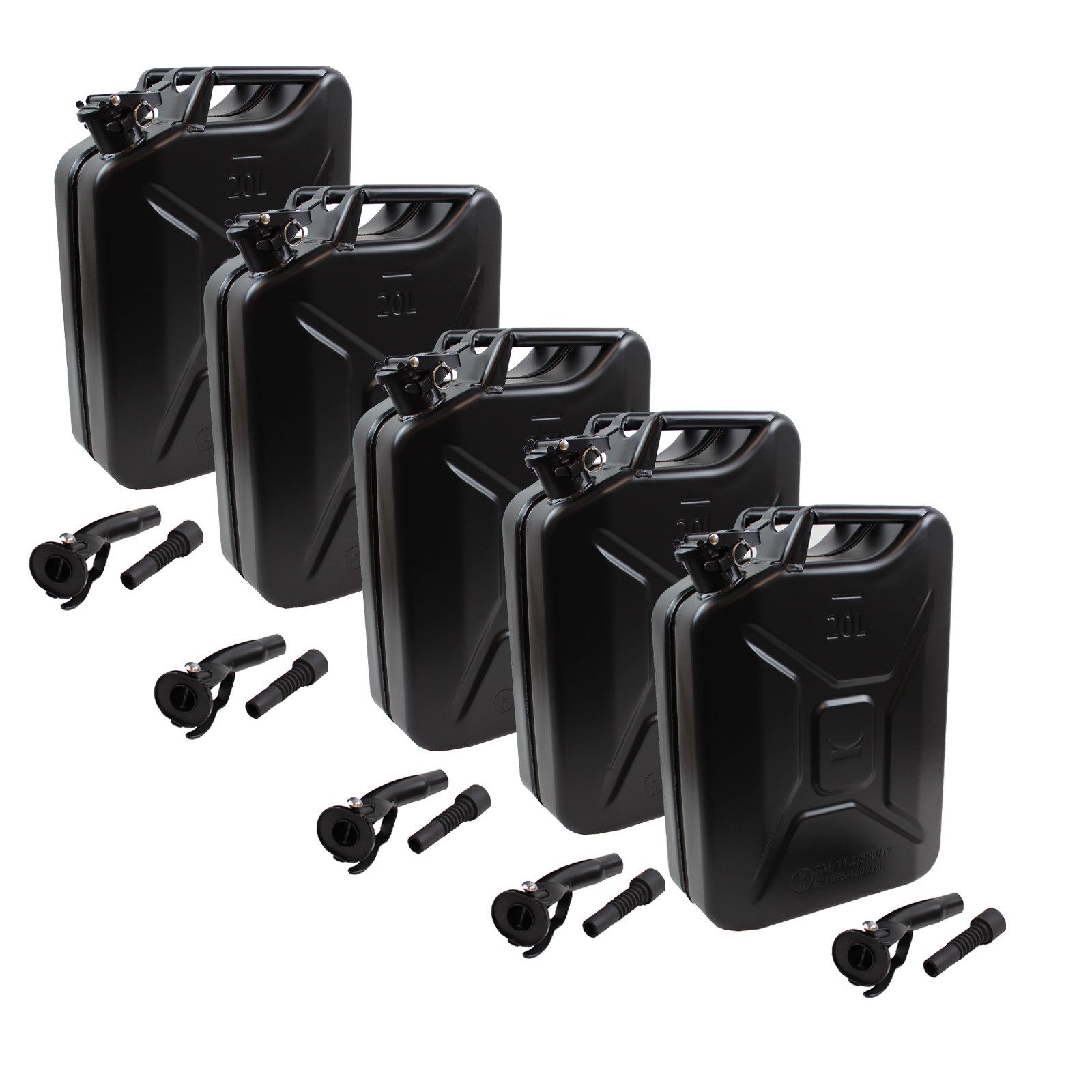 Lieferumfang | 5x Metallkanister 20l mattschwarz 5x Ausgießer flexibel mattschwarz |
