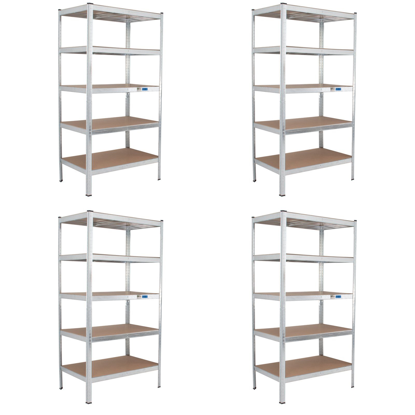 4x TRUTZHOLM Schwerlastregal 180x90x60 cm, Steckregal, Lagerregal, verzinkt, Traglast je Regal 875 kg
