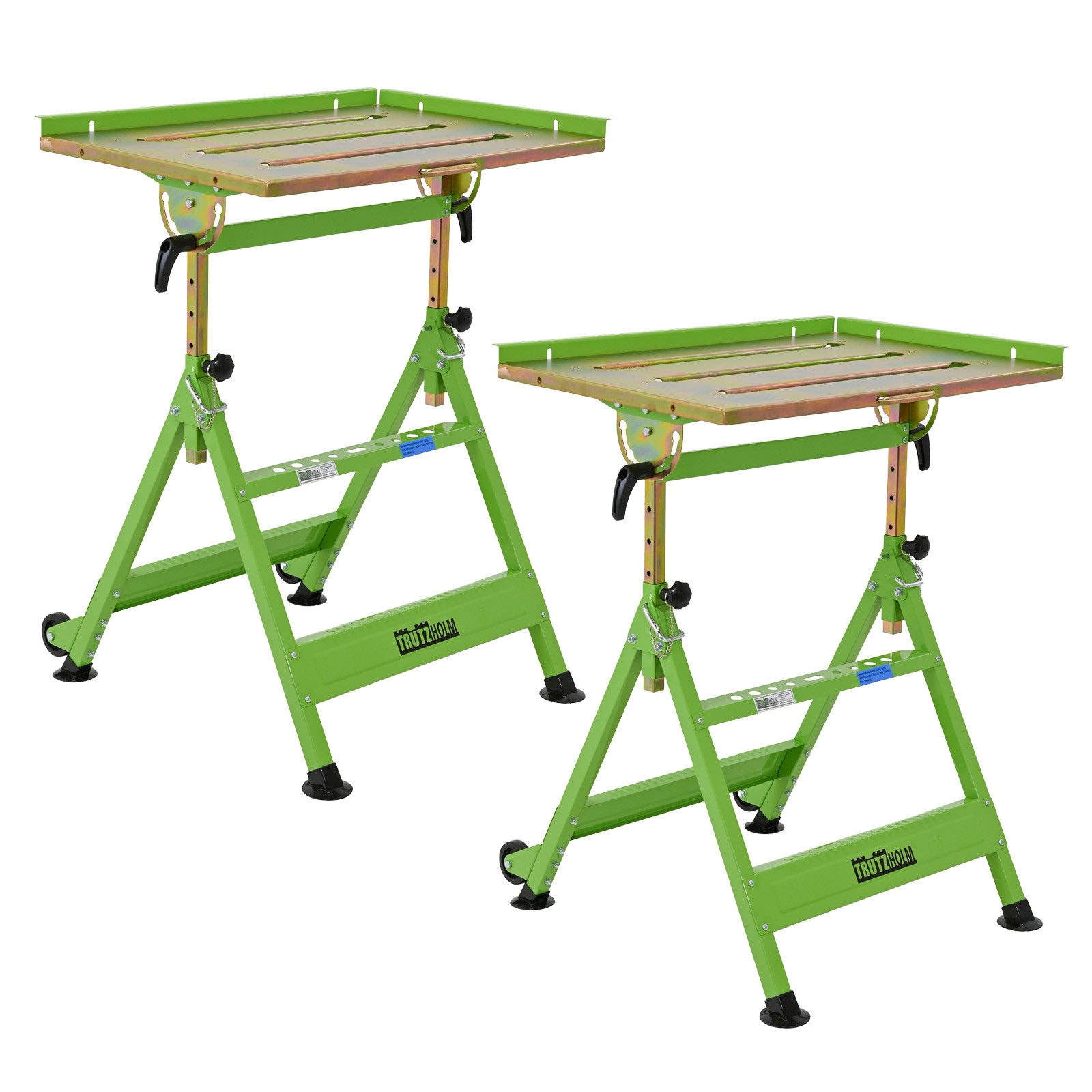 TRUTZHOLM Mobiler Schweißtisch aus Stahl, 4-fach höhenverstellbar und belastbar bis 150 kg mit stufenloser Neigung bis 90°, Arbeitsfläche aus galvanisiertem Stahl