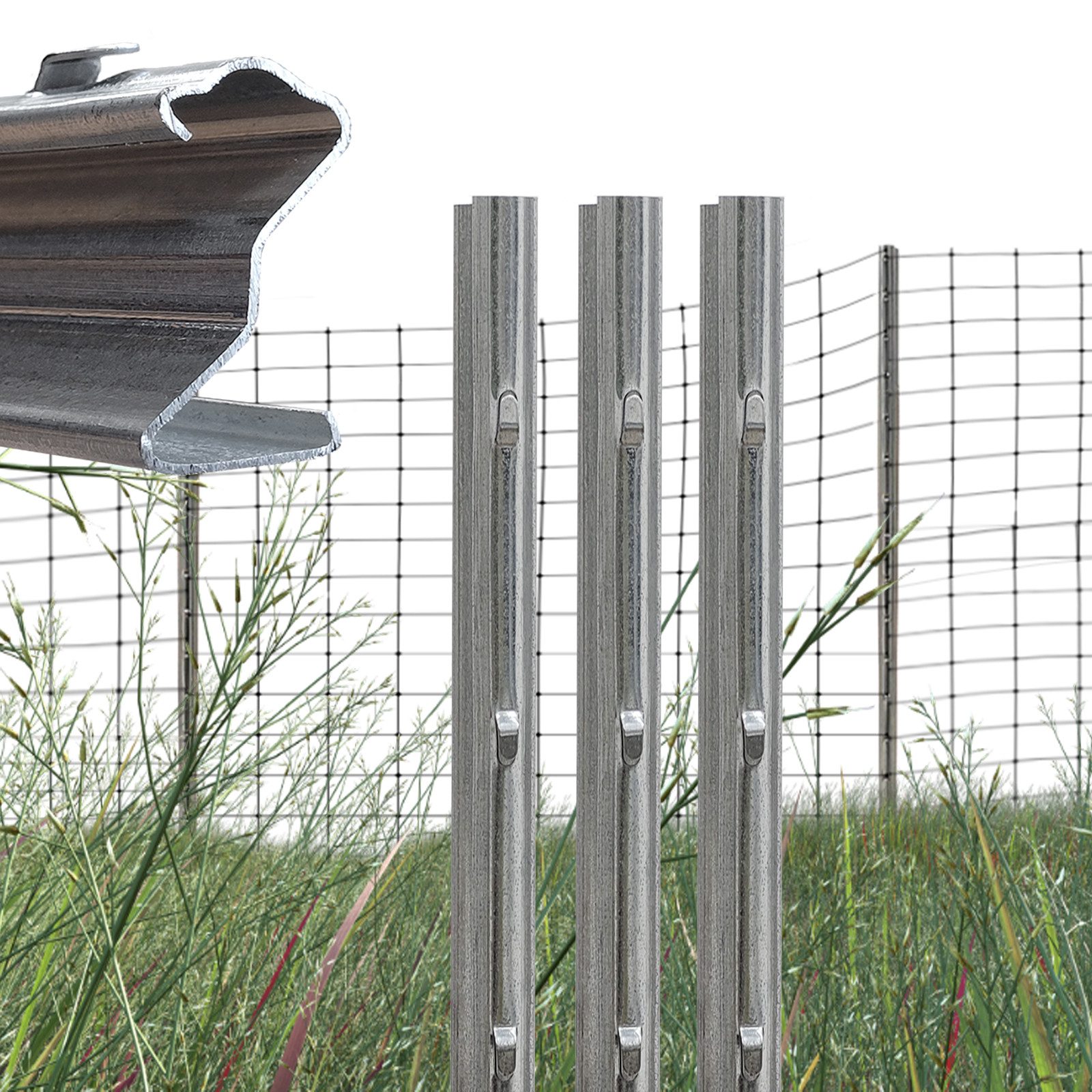 40x Z-Profil Zaunpfosten Zaunpfähle 200 cm verzinkt für Zäune 1,5 mm Stärke gestanzte Haken Forstprofil