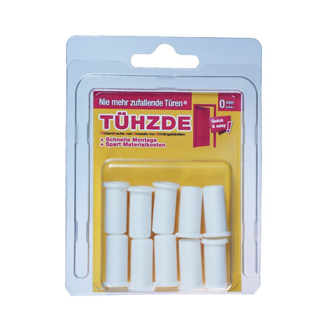 Produktdetails: Die innovative Lösung für zufallende und schleifende Zimmertüren | Erhältlich in drei unterschiedlichen Aufbauhöhen | Einfache Montage, Langlebig und wartungsarm | Geeignet für zweiteilige Bänder mit Dornmaß 7,85mm im Durchmesser | Farbe: Weiß | Material: Kunststoff | Gewicht: 0,9 Kg | Montageart: Stecken | Anwendungsbereich: Innen | Lieferumfang: 10 Stück | Schnelle und unkomplizierte Montage, Spart Materialkosten, Entwickelt um die Türe zu bremsen |
