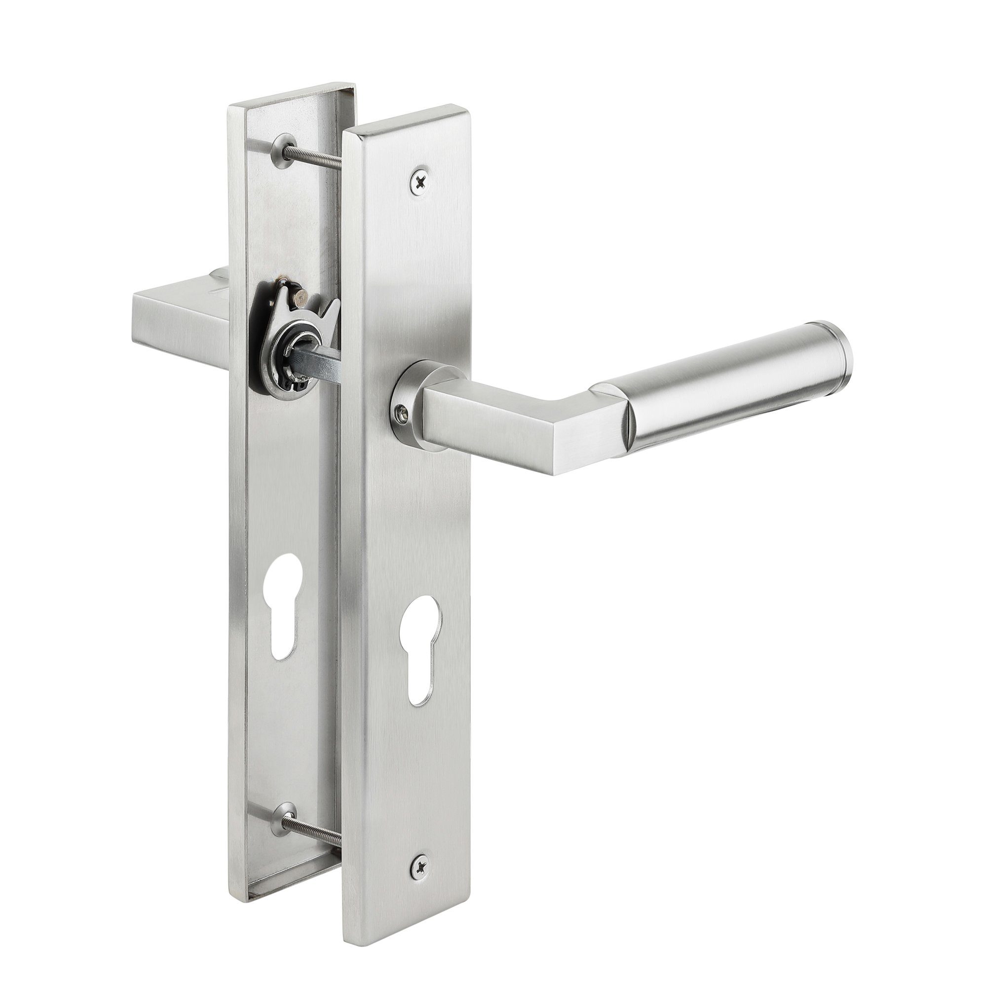Lieferumfang | 2 Langschilder mit festdrehbar gelagerten Drückern Vierkantstift Montagematerial |