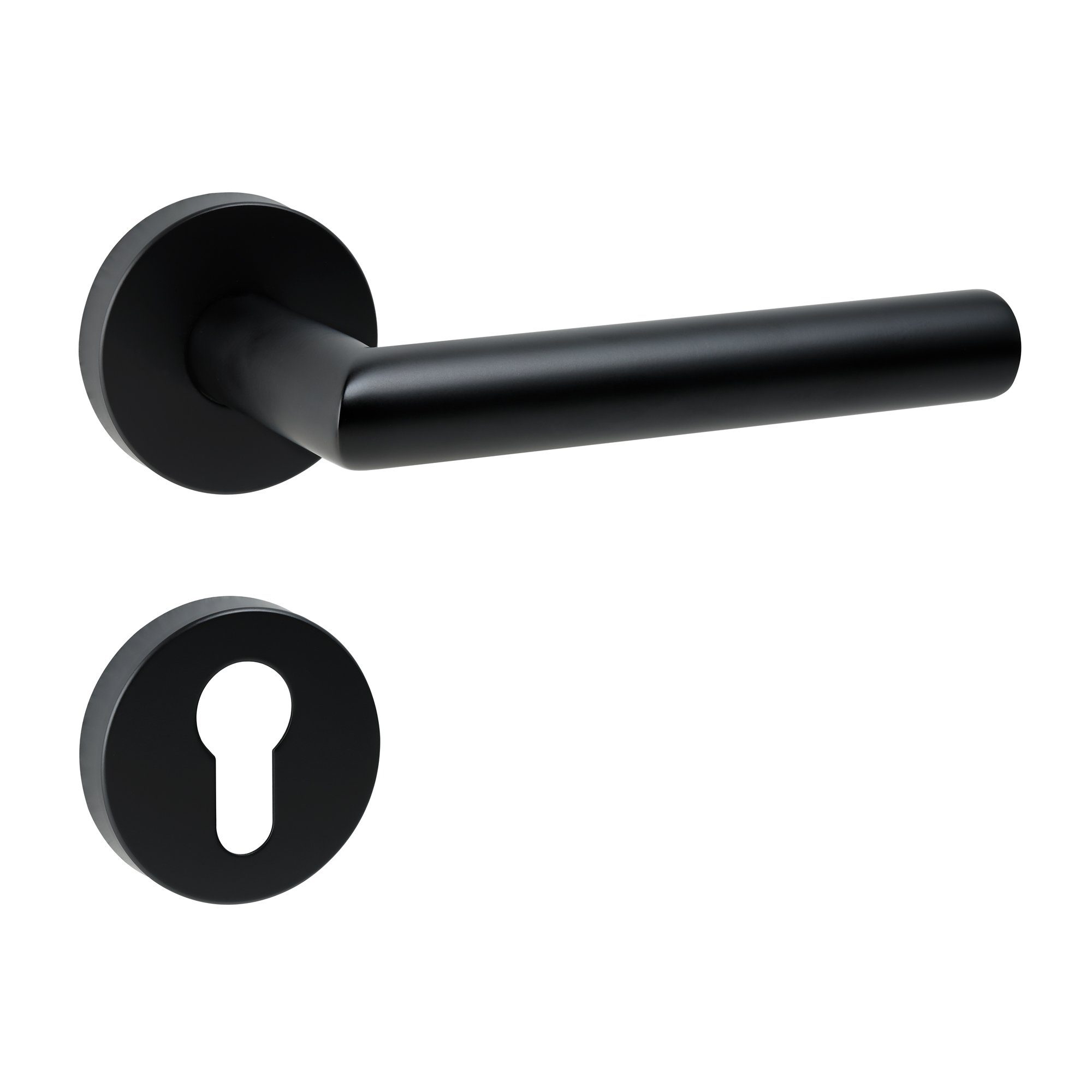 EINFACHE MONTAGE: An einer vorgebohrten Zimmertür ist die Garnitur innerhalb weniger Minuten montiert. Zum Lieferumfang des Sets gehören 2 Drückerrosetten, 2 Türklinken (bzw. Knauf), 2 Schlüsselrosetten, Befestigungsmaterial und eine Bohrschablone. AUFBAU: Die Garnitur verfügt über eine robuste und temperaturbeständige Kunststoffunterkonstruktion. Die Madenschrauben, welche mit einem Sicherungslack versehen sind, haben wir unter den Griffen angebracht, damit diese nicht störend auffallen. Wir haben die Griffstärke auf 20 mm erhöht, damit diese noch wertiger und eleganter aussieht. TECHNIK: Die Unterkonstruktionen der Drücker verfügen über eine Hochhaltefeder, die das Einsteckschloss entlasten. Die Garnitur ist lose gelagert. DESIGN: Die wohl momentan beliebteste und am häufigste bestellte Griffform auf dem Markt. Das Grundmaterial der Garnitur ist V2A Edelstahl, welches alternativ per Elektrophoreseverfahren Schwarz Matt beschichtet wurde. PASSFORM: Die Garnitur passt an jede deutsche handelsübliche Zimmertür mit einer Türstärke von 38-45 mm und einem Einsteckschloss für WC-Garnituren mit einem Abstand von 72 mm (bei der WC-Garnitur wird ein Einsteckschloss mit Vierkantlochung benötigt mit einem Abstand von 78 mm). Der Bohrabstand der Rosetten beträgt 38 mm und der Vierkant beträgt 8x8 mm (bei WC 2x 8x8 mm).