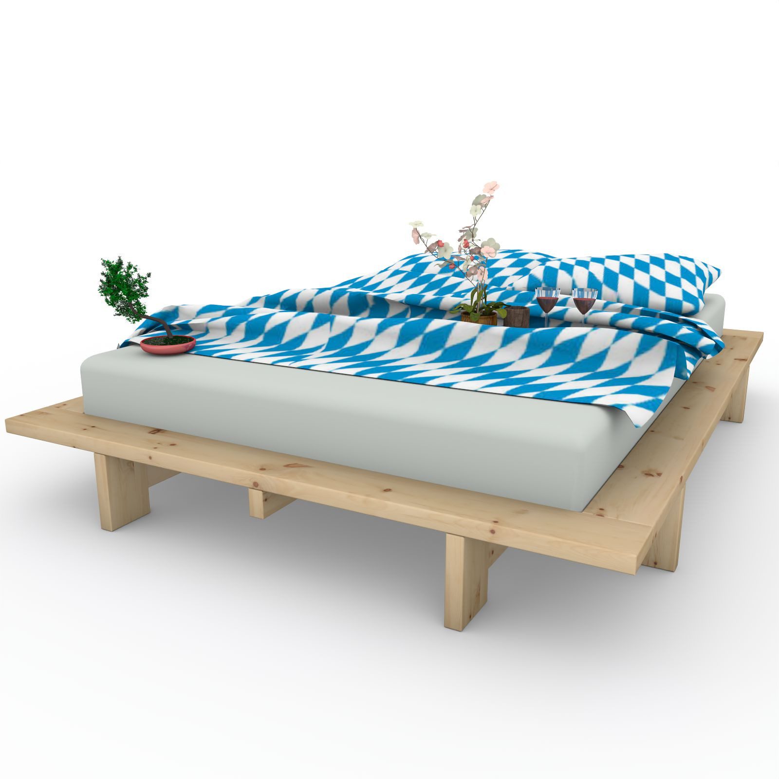 Massivholzbett gefertigt aus unbehandelten Fichten- oder Zirbenholz. Holzquerschnitte von 40mm Rahmenstärke garantieren eine Belastung von bis zu 300kg Flächenlast. Japanische Betten verkörpern eine einzigartige Mischung aus Minimalismus, Funktionalität und natürlicher Ästhetik. Die klare, schlichte Optik passt zu modernen, puristischen Einrichtungsstilen und wirkt beruhigend auf das Raumambiente. Ein tiefes Bett lässt den Raum höher und offener wirken, besonders in kleinen Zimmern oder Räumen mit niedriger Decke.