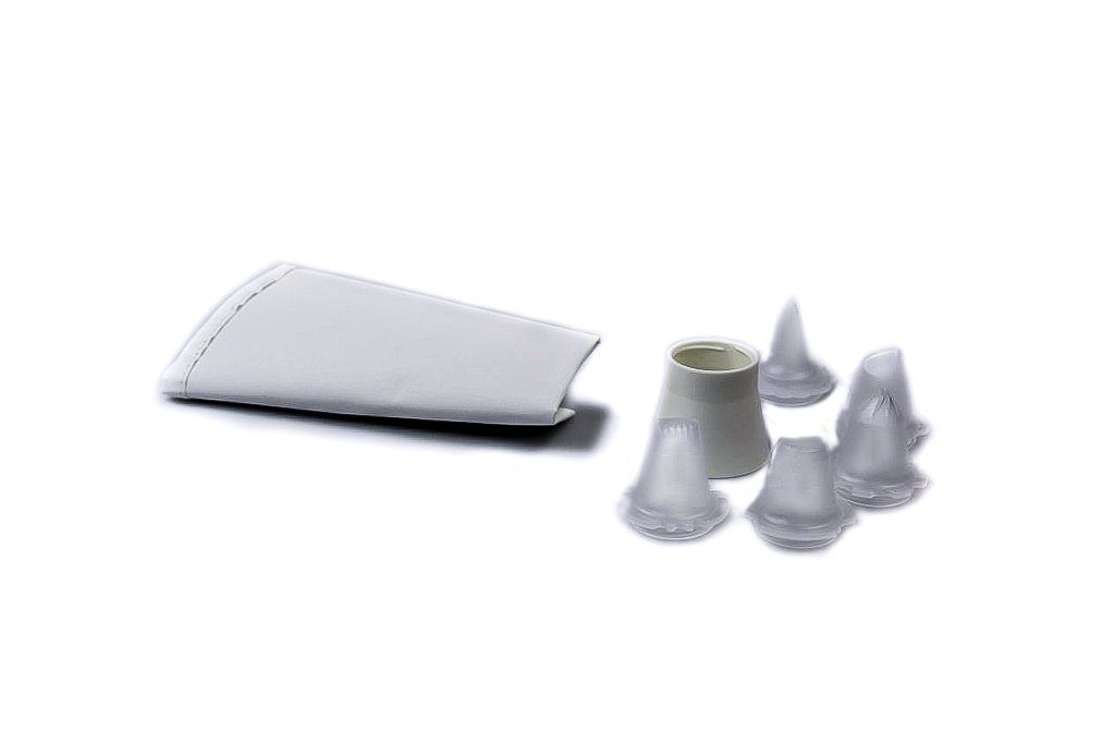 5 verschiedene Tüllen, die von Außen aufgeschraubt werden.