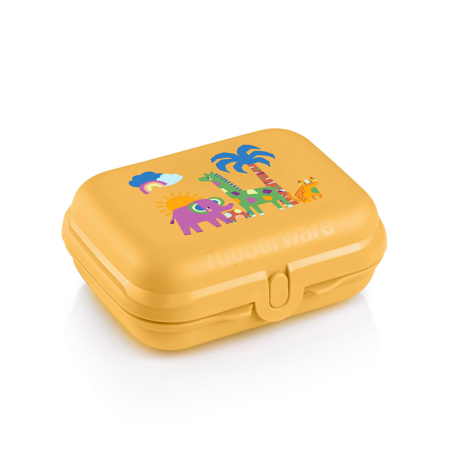 Die Kleine Box Safari gelb ist eine bezaubernde Snackbox für Kinder, gestaltet mit einem lustig-bunten Safari-Design. Behälter und Deckel sind im wahrsten Sinne des Wortes aus einem Guss gefertigt, was bedeutet, dass beide Hälften fest mit einem beweglichen Scharnier verbunden sind. Diese durchdachte Konstruktion ermöglicht es, die Boxen platzsparend ineinander zu stapeln, wenn sie einmal nicht in Gebrauch sind.