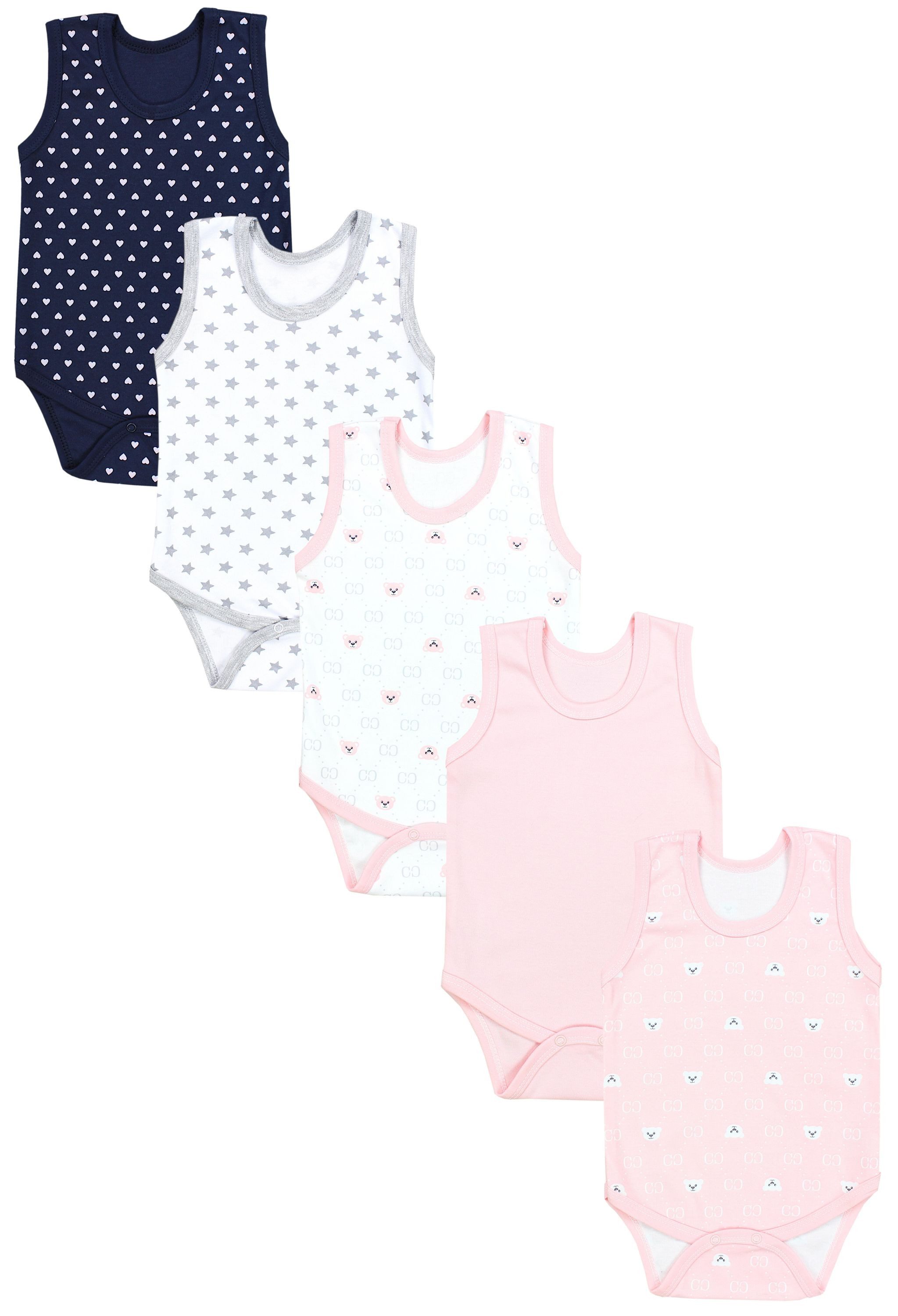 Dieser bequeme Baby Body ohne Ärmel der Kindermarke TupTam passt durch das unifarbene Design zu vielen Outfits und lässt sich zu verschiedenen Gelegenheiten tragen. Der praktische Einteiler kann zudem als Unterwäsche unter einem Strampler oder Schlafsack angezogen werden. Die Druckknöpfe im Schritt erleichtern das An- und Ausziehen und das Wickeln. Das hochwertige Interlock-Jersey Material aus reiner Baumwolle sorgt für optimale Atmungsaktivität und hervorragenden Tragekomfort. Die Passform und Farben beleiben auch nach mehreren Waschgängen erhalten. Lieferbar im günstigen 5er Pack in modischen Farben. Ein grundlegender Bestandteil der Baby Erstausstattung sowie ein ideales Kleidungsstück zum Bemalen auf einer Babyparty!Hergestellt in der EU.