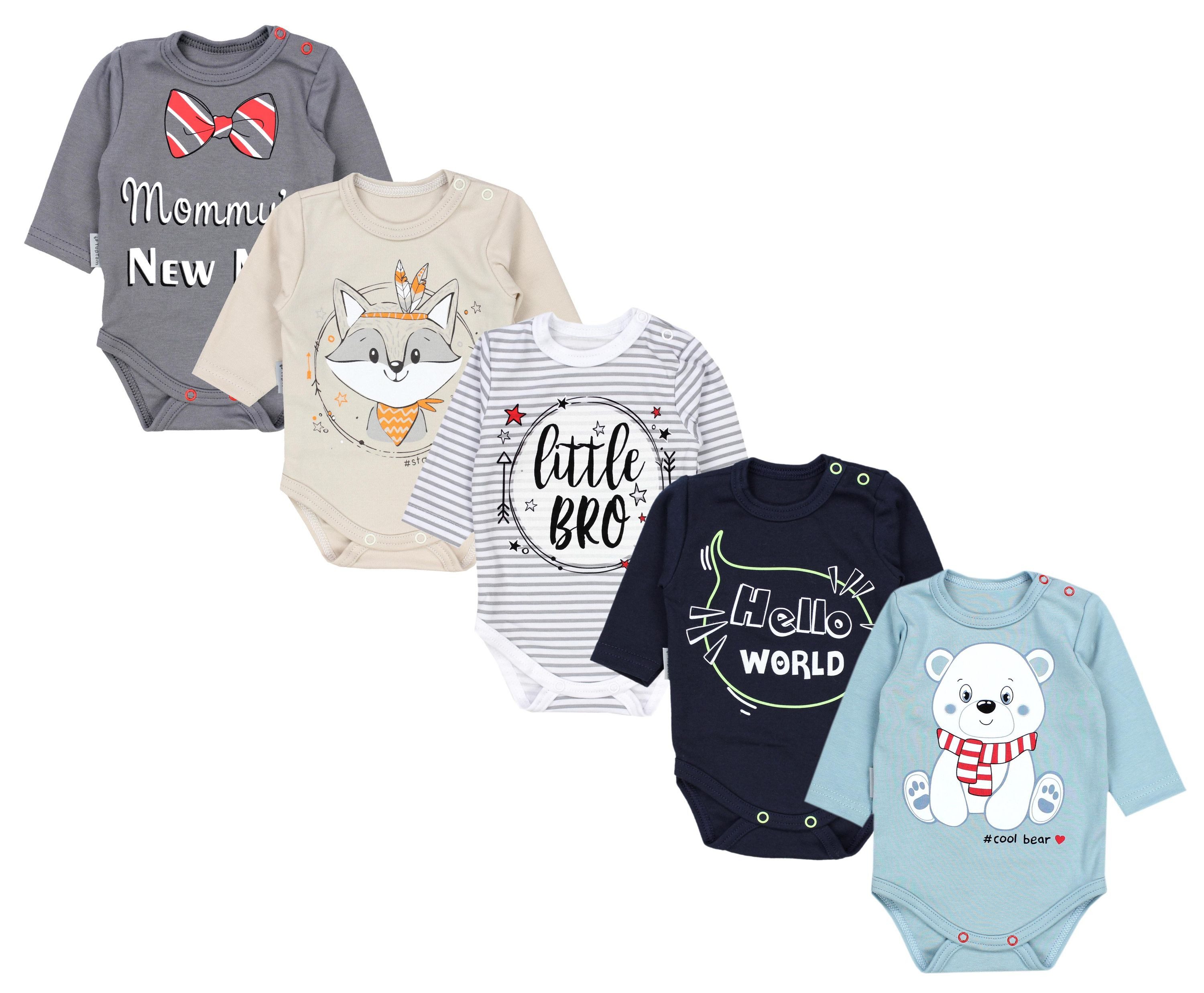 LANGARMBODY IM PRAKTISCHEN 5ER SET – Baby Body langarm mit süßen Motiven, ideal für Mädchen und Jungen. Perfekt für den Alltag oder als Geschenk zur Geburt.