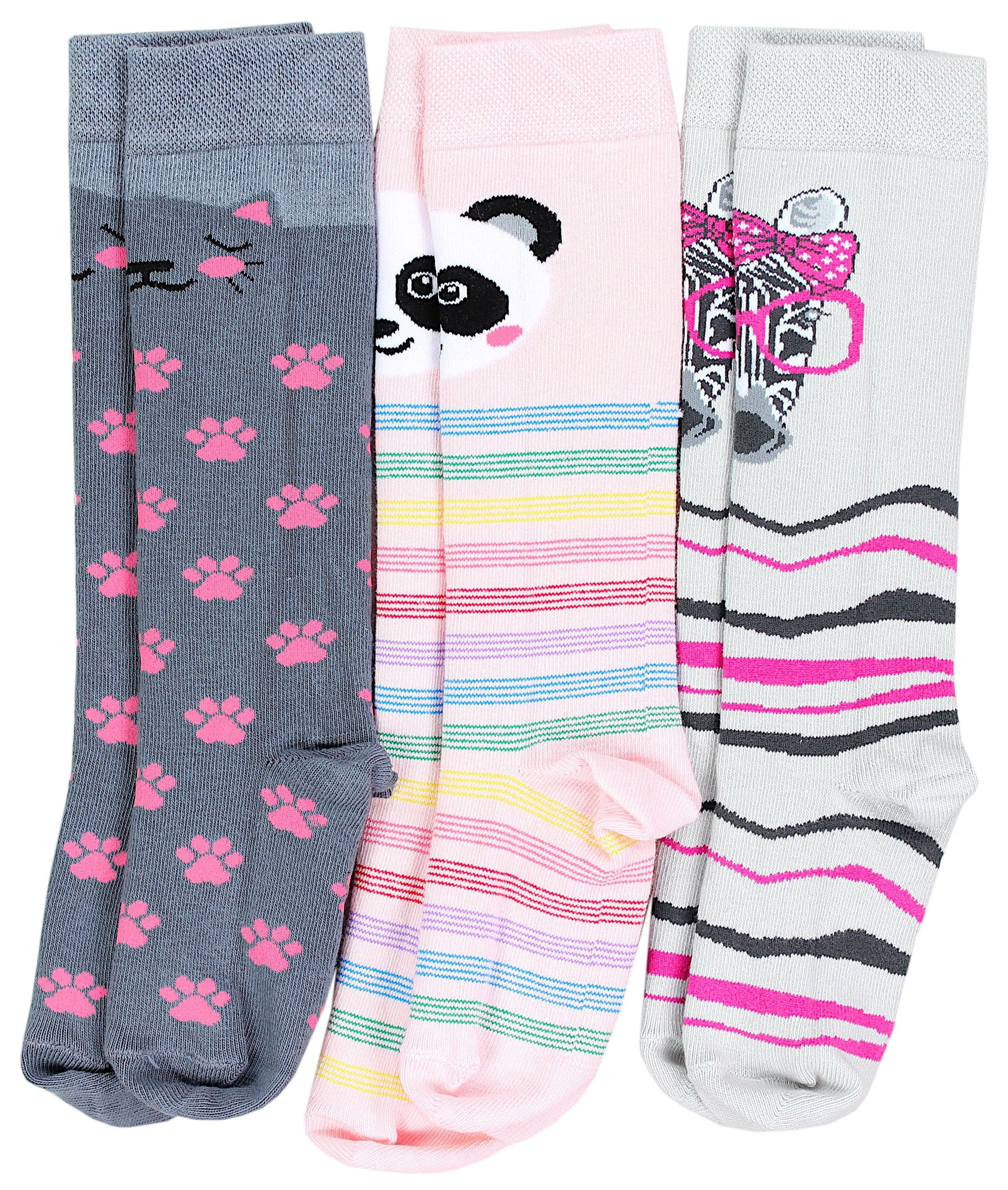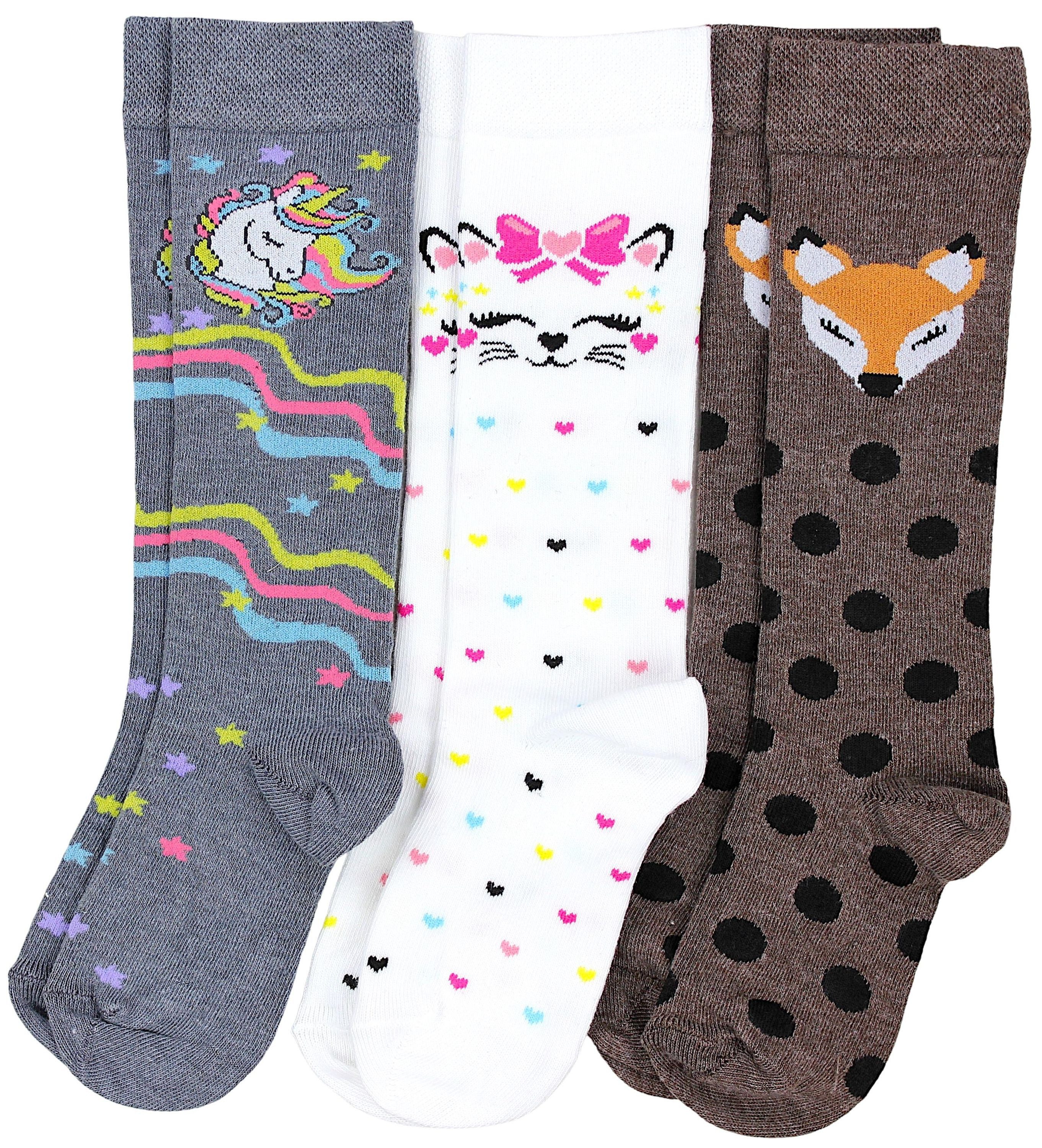 KNIESTRÜMPFE MÄDCHEN IM 3ER PACK – Bunte Kniestrümpfe Kinder aus weicher Baumwollmischung mit sicherem Sitz und bequemem Bund – ideal für Alltag, Schule oder Freizeit.
