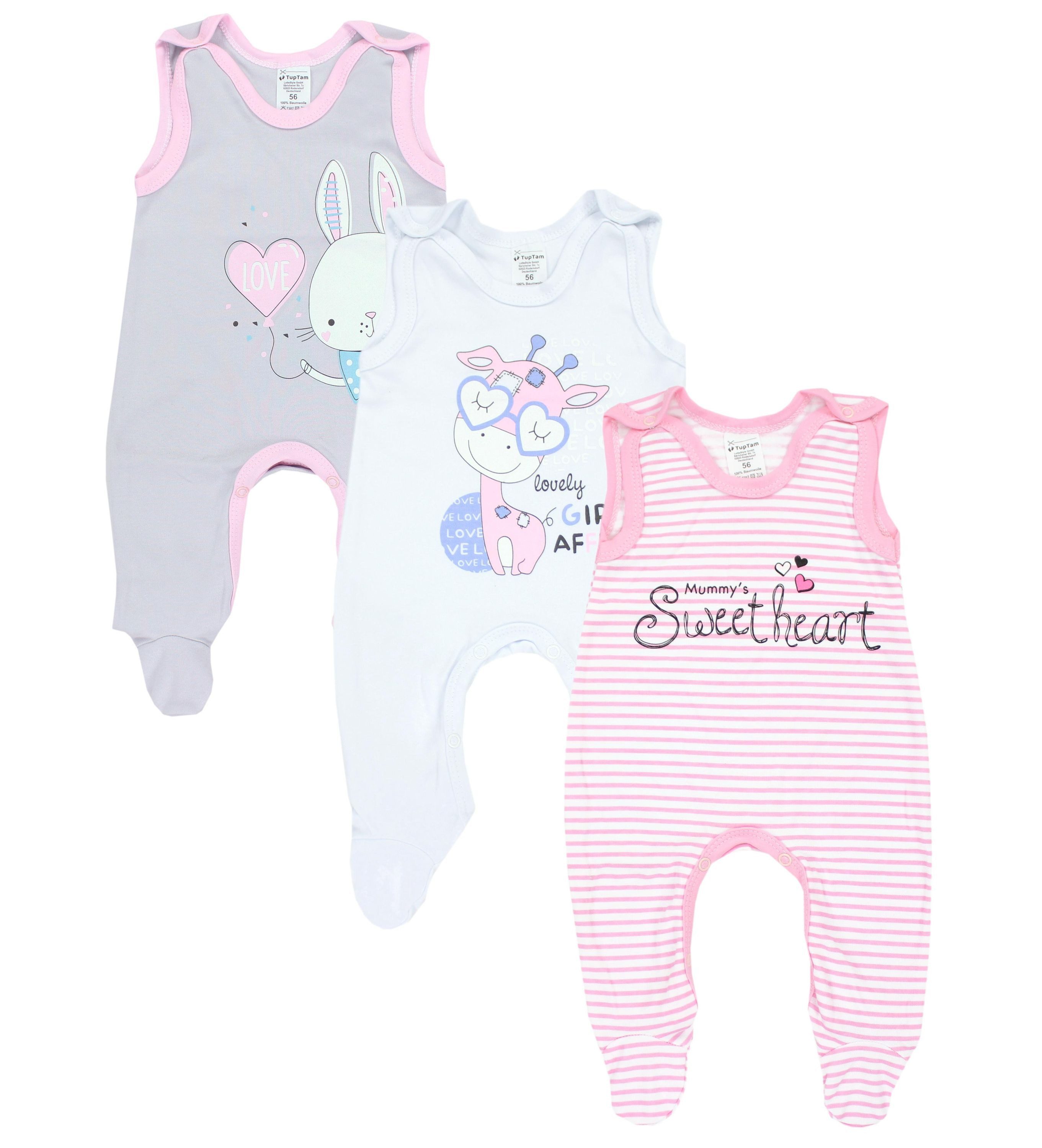 Komfortabler Mädchen Babystrampler mit Aufdruck im attraktiven 3er Pack - ideal für den alltäglichen Gebrauch!
