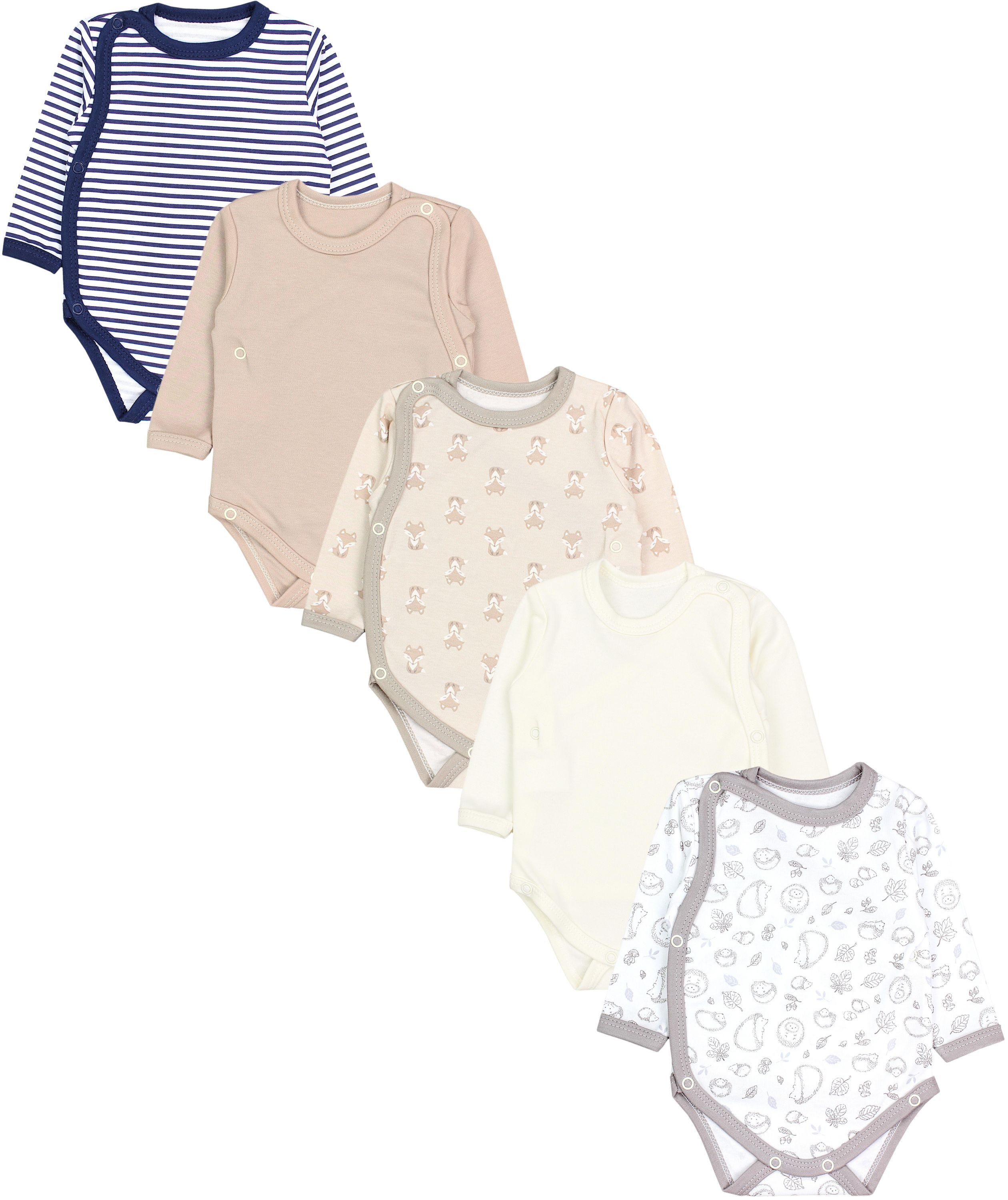 К сожалению, sind die Kragen der Uni body's kleiner als die bedruckten. Nach der 2. 30 Grad Wäsche sind die bedruckten body's für mich nicht mehr zu gebrauchen da die eingelaufen waren. Die unifarben nicht. Ziemlich doof denn überall bekommt man zu diesem Preis keine wickelbodys aber vielleicht gerade deswegen sollte man doch etwas mehr Geld ausgeben.