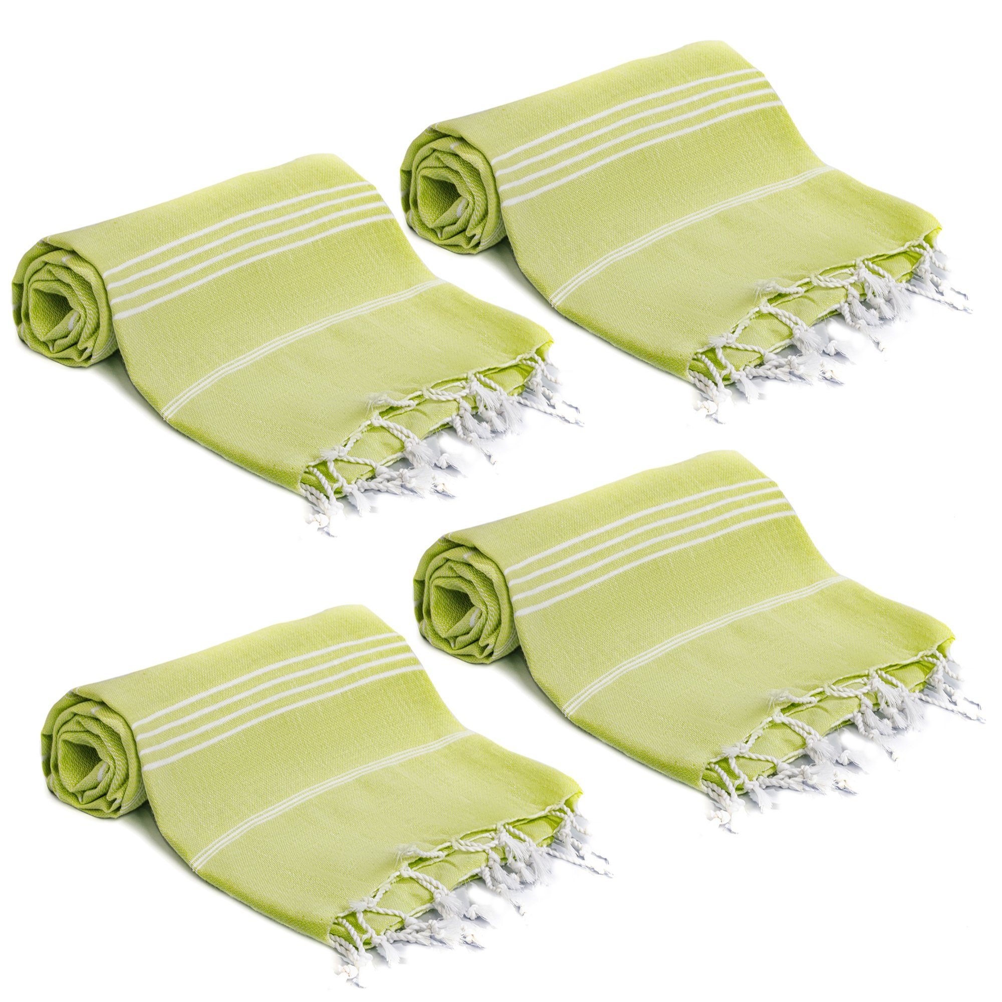 4'er SET 100% Baumwolle Hamamtücher - Turquoise Home - Schwere, nasse Badetücher vom Spa oder vom Strand zurück zu schleppen, die abfärben und voller Flusen sind, macht so überhaupt keinen Spaß. Ein traditionelles Hamamhandtuch bleibt leicht, trocknet schnell, färbt nicht ab und fusselt nicht. Diese türkischen Hamamtücher sind dicht gewebt; zudem können echte türkische Badetücher aufgrund ihres zeitlosen Designs auch jederzeit als Überwurf oder Sarong getragen werden, man kann sie als Saunahandtuch oder als XXL Strandtuch nutzen. Sie sind reizvolle Geschenke für Freunde oder die Familie. Sind sie saugstark? Ja. Obwohl sie dünn und leicht sind, sind die Handtücher aus hundertprozentiger Baumwolle höchst saugfähig, was bedeutet, dass Sie und auch das große Badetuch selbst schnell wieder trocken werden! Dieses türkische Hamamtuch kommt bereits weich bei Ihnen an und wird mit jeder Wäsche noch weicher. Wir empfehlen, dass Sie es vor der erstmaligen Nutzung waschen. Turquoise Home Hamamtücher.