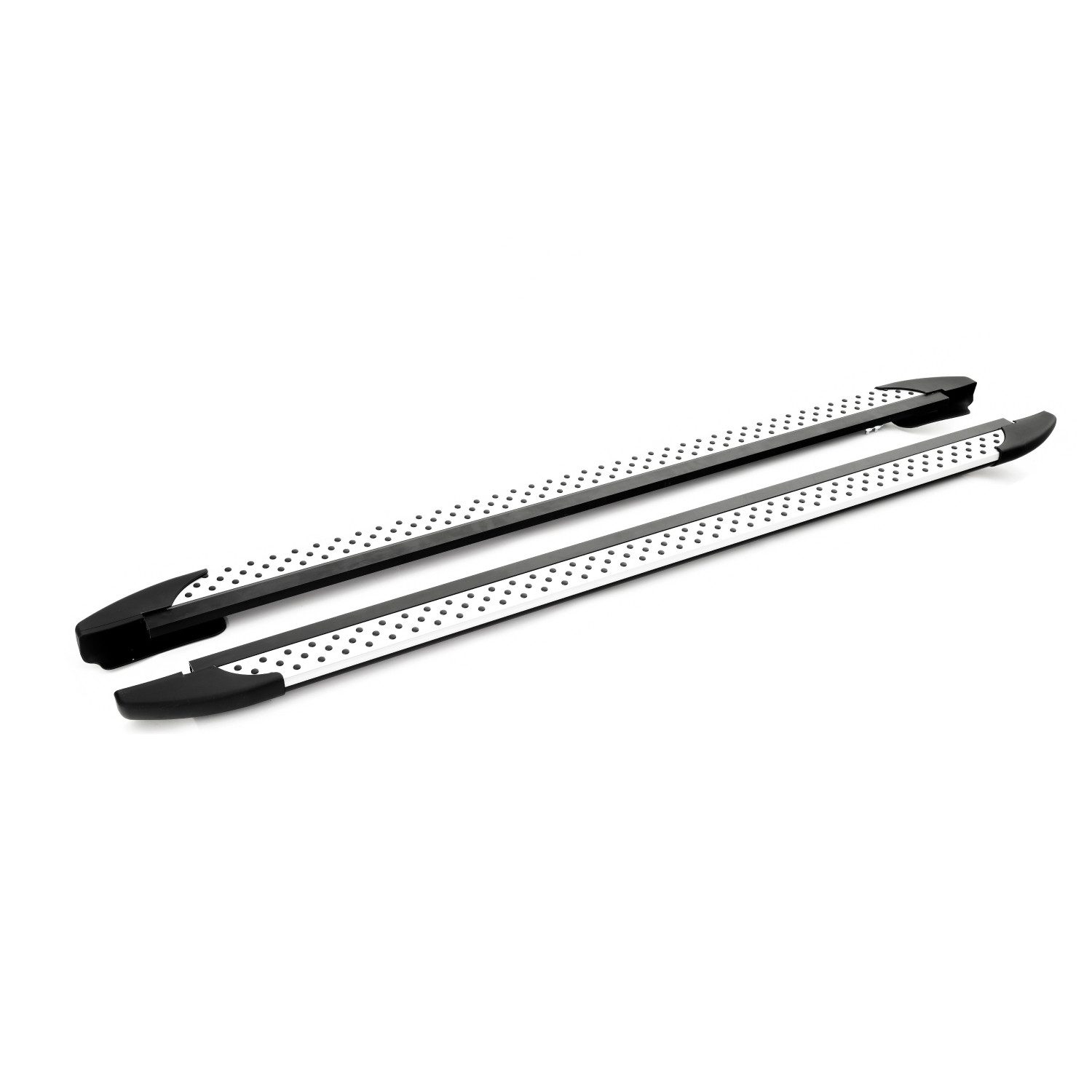 Die Trittbretter sind aus hochwertigem Aluminium und ABS-Kunststoff gefertigt. Sie sind korrosions- und rostbeständig und bieten eine hohe Langlebigkeit, selbst unter anspruchsvollen Bedingungen. Mit einer Tragfähigkeit von bis zu 250 kg (abhängig vom Fahrzeug-Chassis) bieten sie sichere Unterstützung. Die Montage ist einfach: Sie werden mit einem verzinkten Montageset geliefert und können ohne zusätzliche Schritte direkt an den unteren Chassis-Befestigungspunkten des Fahrzeugs montiert werden. Eine Montageanleitung und Bilder sind im Lieferumfang enthalten.